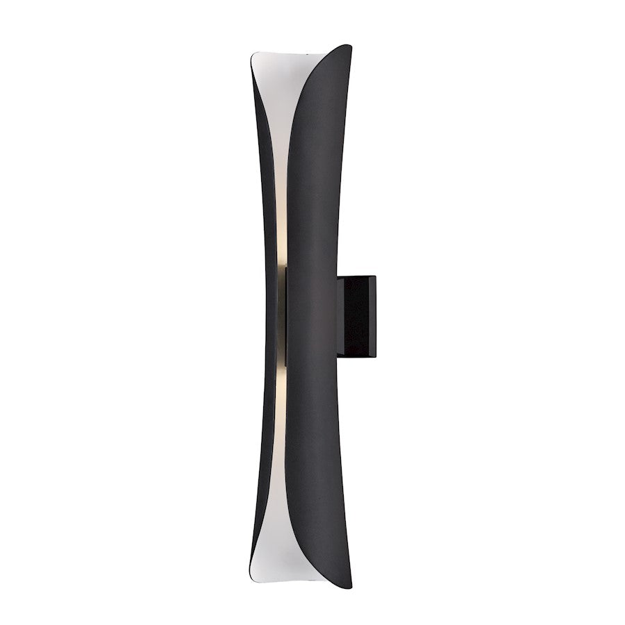 Softly rolled aluminum does not quite meet at the center, leaving an opening to allow light to escape from its top and bottom, visible all along its center. The scroll series comes in our Architectural Bonze finish with a white interior to better reflect light and create an interesting light pattern on the wall. Suitable for both indoor and outdoor applications.