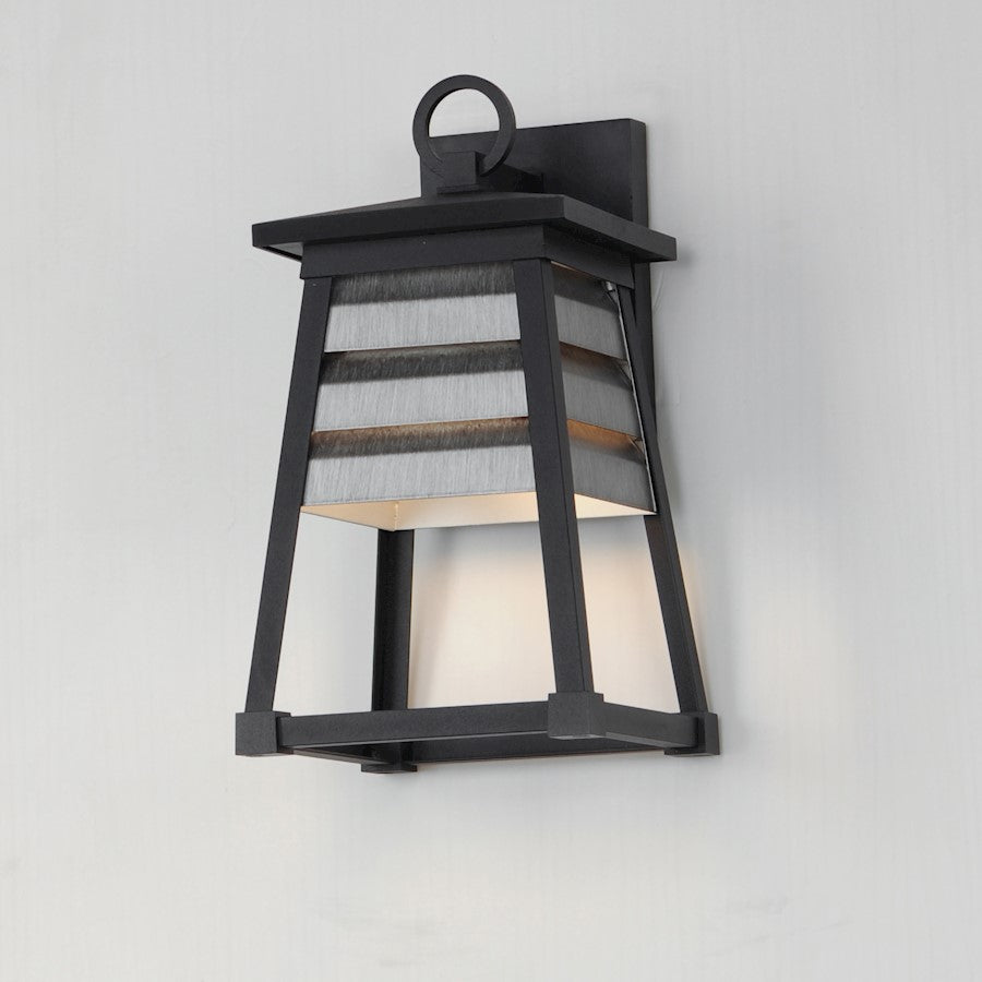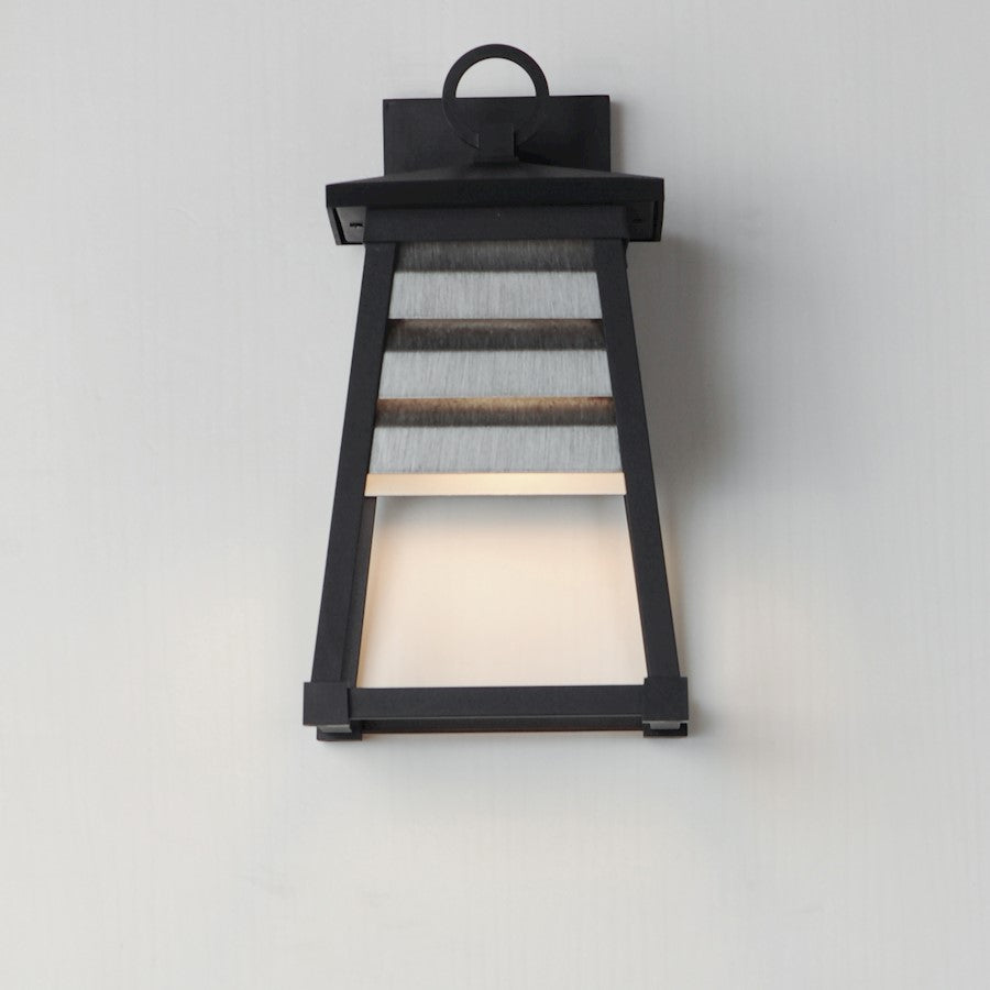 Contrasting louvered insets are set within Matte Black trapezoidal frames. The frames are made of Vivex so their finish will withstand harsher climates. The louvered panel insets are made of aluminum and feature a full cut-off design aesthetic making this design suitable for Dark Sky applications. An added benefit is the removal of glass altogether, adding a robust quality to the construction of the fixtures leading to longevity and lower maintenance. These wide plank louver panels complement the design's coastal styling adding interest in contrasting Weathered Zinc or White options, while the matte Black finish blends into the frame for a cleaner, more seamless approach.