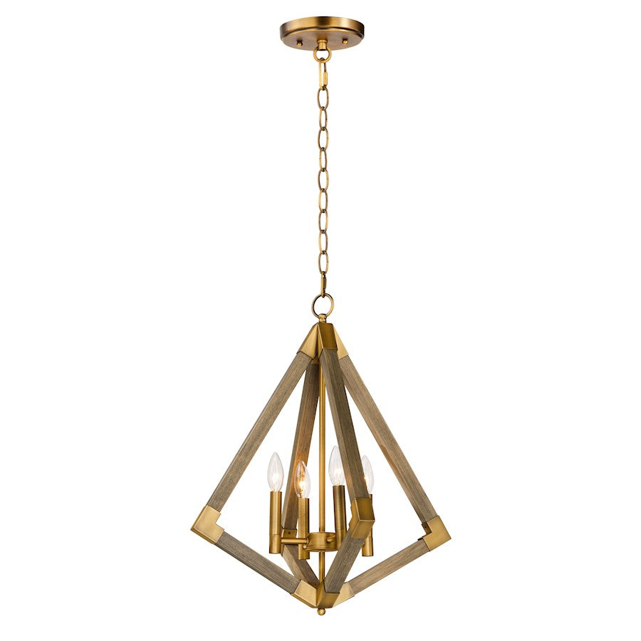 Prism shape pendants made of solid wood finished in Weathered Oak and trimmed with Antique Brass accents work beautifully over kitchen islands or dining tables. The contemporary shape and traditional finish demonstrate a transitional design that fits into most interior design applications.