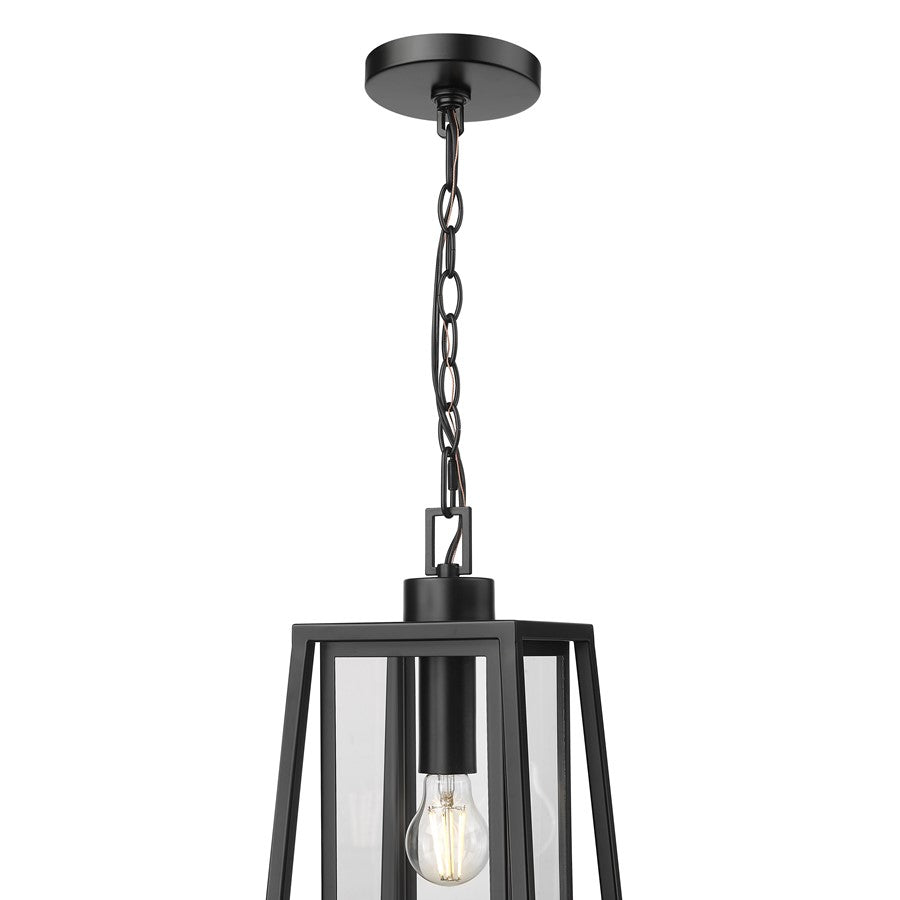 The Denzell Family of outdoor lighting gives the classic lantern profile a thoroughly modern makeover with its distinctive design. The tapered, outer framework perfectly silhouettes the clean lines of the lantern creating a unique dimensional lighting effect. Available as 1 or 2-light sconces and 1-light hanging lanterns, both with clear glass panels, the fixtures are finished in durable powder coat black and are perfect for the front porch, deck, and outdoor walkways.