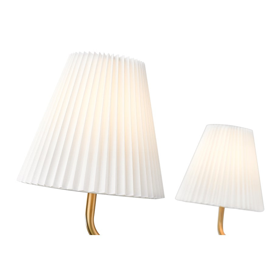 The Ami Family beautifully synthesizes a modern profile with traditional styling to create a thoroughly unique design aesthetic. The fixtures, finished in either matte black or vintage brass, are comprised of crisp, clean lines arcing gently upwards and capped with vintage style white fabric pleated shades. Available as 1-light sconces, 2-light island pendants, and 4-light chandeliers, these fixtures create a light and airy aesthetic for any space.