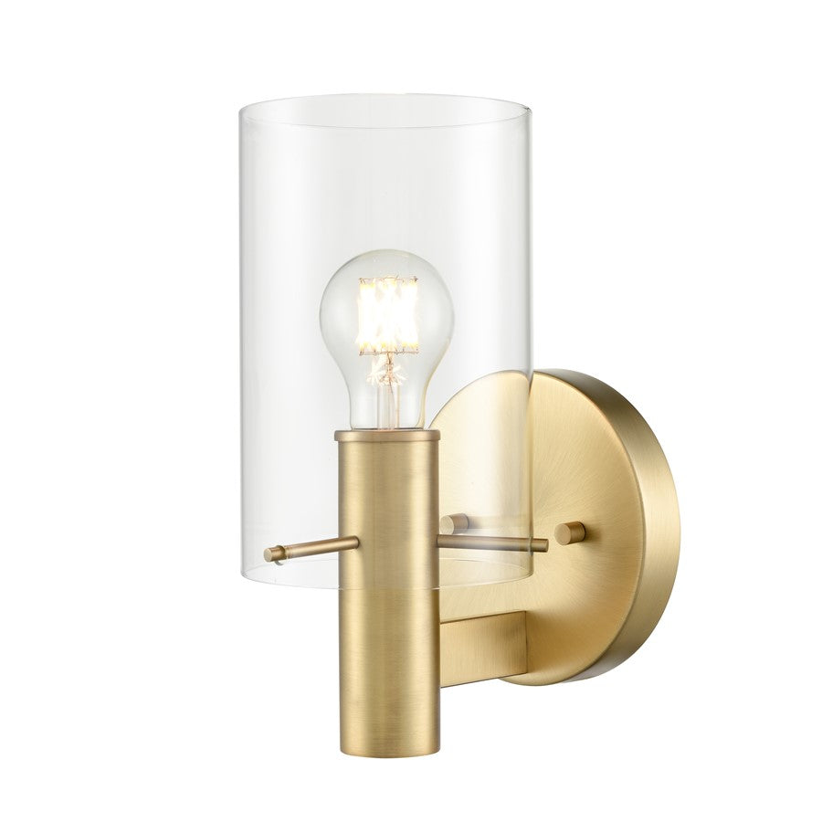 The Apolla Family is statement-making modern design at its best. These minimalist fixtures are finished in either vintage brass or matte black and punctuated by the clean lines of the circular backplate and cylindrical arm. Available as either a 1-light sconce or 2- or 3-light bath fixture, both options are complemented by a floating clear glass shade, providing a minimalistic effect.