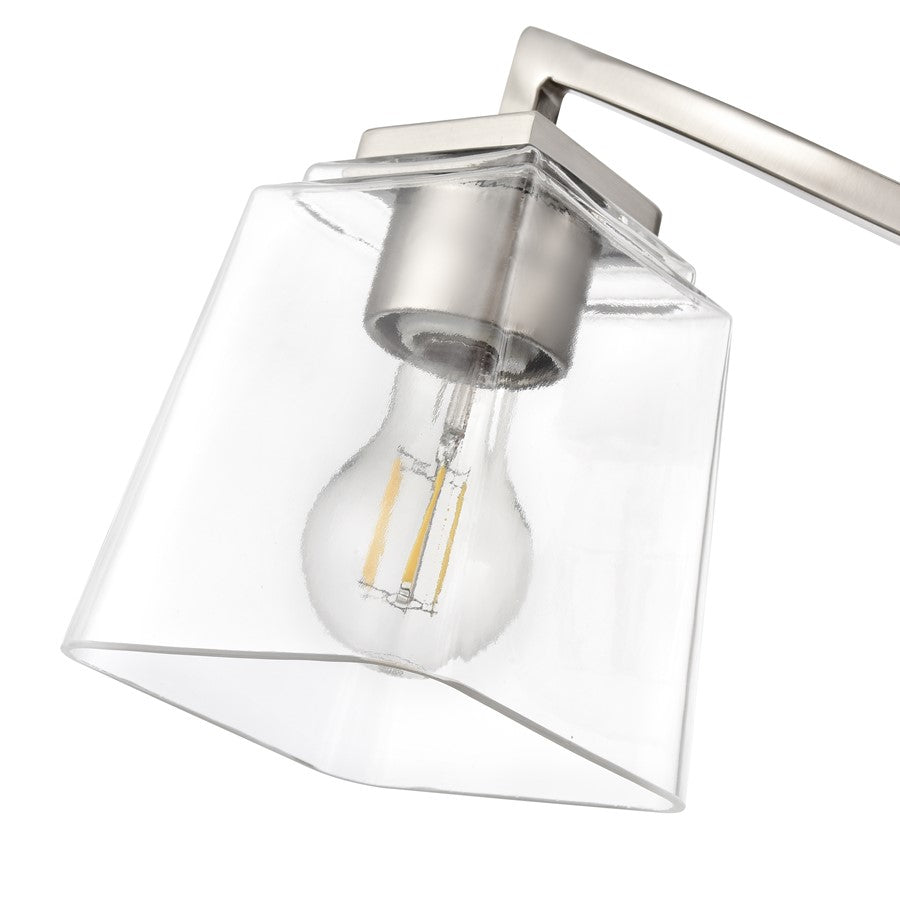 Sleek arced lines and unique square-shaped, clear glass globes infuse the Avenna Family of vanity lighting with a dynamic sense of motion and an elegant flair. Finished in modern gold, polished nickel, matte black, or brushed nickel these exquisite fixtures are available in 2- or 3-light options. Perfect for any interior design scheme, these vanity lights transform any bath space with a bold and sumptuous design statement.