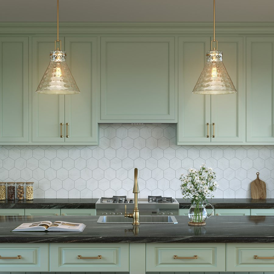 The Barlon Collection of vanity and pendant lighting provides a unique touch of style with artfully flared, clear water glass shades. The fixtures are a modern take on classic hook-style lantern lighting and are available in matte black, polished nickel, vintage brass, or modern gold with 1-light, 2-light, and 3-light options. This collection is the perfect look for a modern farmhouse or industrial-style loft.