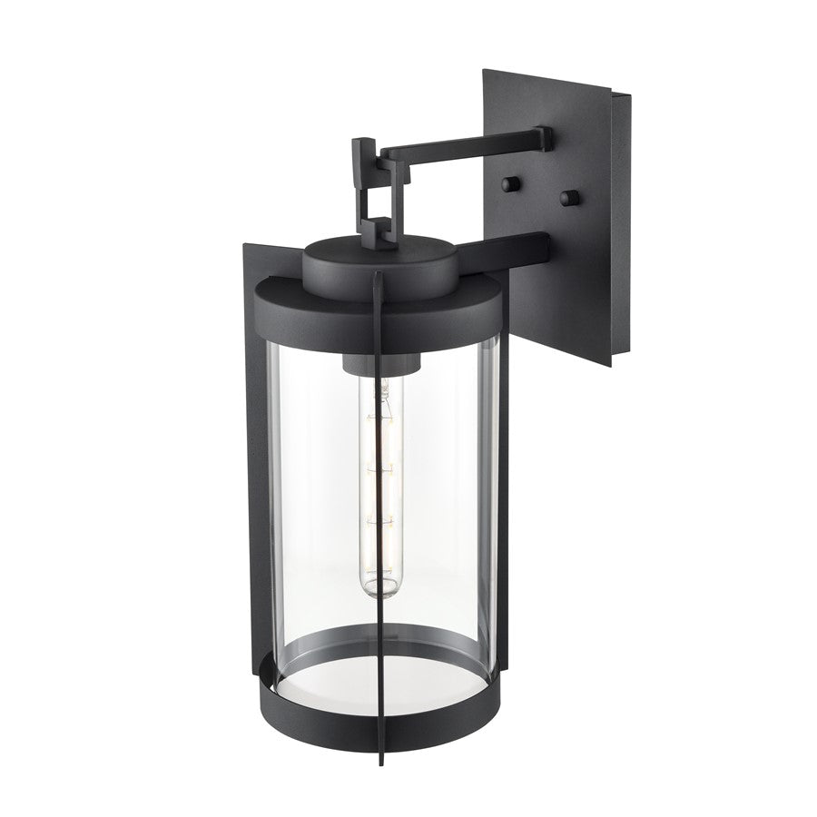 Reimagined classic-style outdoor lighting is the signature of the Ellway Collection. The sconces feature a contemporary spin on standard hook-and-ring lanterns and are available in a rectangle or round profile. Artfully suspended with clear glass panels optimizing luminosity, the overall effect creates a striking appeal. All fixtures are available in textured black for a refined finish.
