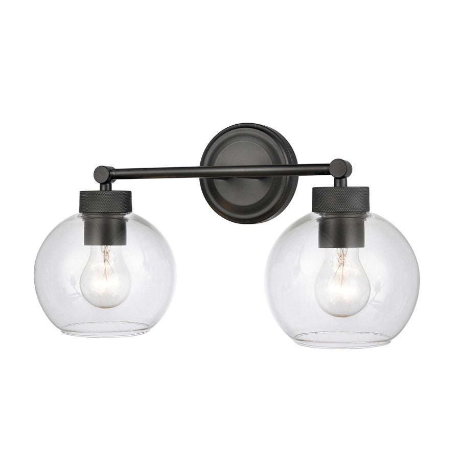 The Jonatan Family of vanity lighting seamlessly fuses modern and industrial design for optimum effect. The sleek fixtures, with hinged-style embellishments, are finished in either matte black or vintage brass. The clear glass globes complete the timeless aesthetic and provide the perfect amount of over-the-vanity lighting, available in 1-, 2-, 3-, and 4-light options.