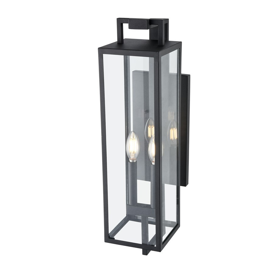 A contemporary interpretation of gothic Victorian design, the Lamont Collection of outdoor lighting is designed to make a bold visual impact on any entryway. The succinct lines of the steel framework create an elongated fixture finished in textured black. The partial, clear glass panels reveal classic-style candles in 1-light, 2-light, and 3-light options.