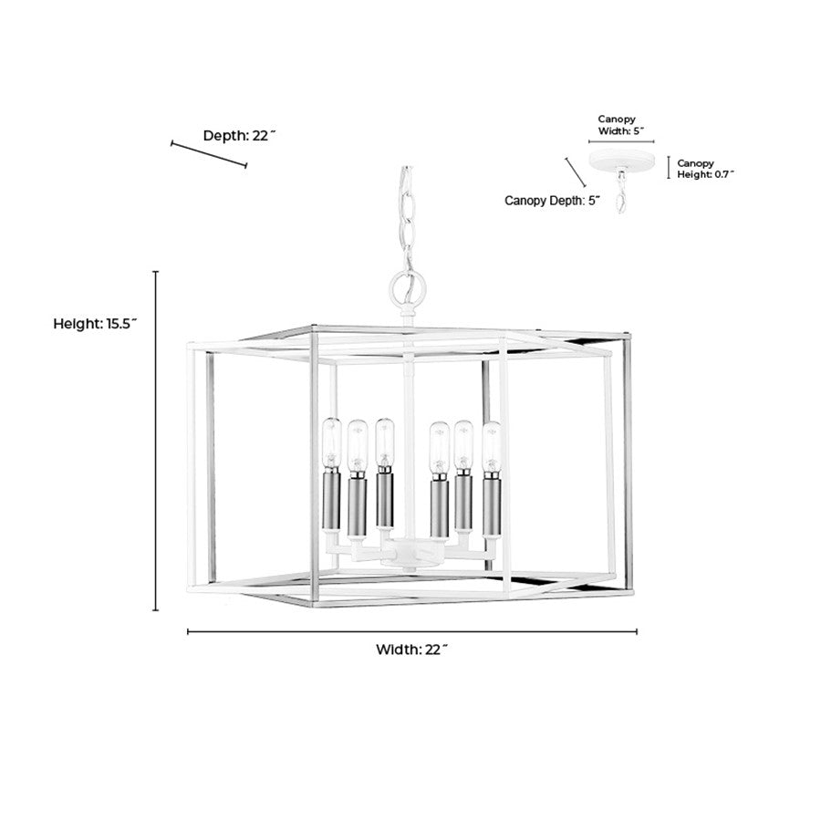 A geometric wonder, the Lowe Family of pendant lighting features an angular interlocking structure framing either 6 or 8 lights. The overall effect is reminiscent of Mondrian mobiles, creating a delicate balance of lines and movement. Finished in a contrasting blend of matte white and vintage brass, these sleek fixtures are designed to make a bold and exciting statement above any dining table or kitchen island.