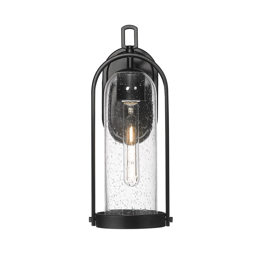The Luxio Family of outdoor lighting is a fashionable take on the classic lantern profile. The birdcage-inspired metalwork is enhanced with modern styling and creates the perfect framing for the elongated clear-seeded glass shade. Available as 1-light sconce or 1-light hanging lantern and finished in powder coat black, these dynamic fixtures invoke the perfect look for any exterior, from ultra-modern to Mission Revival.