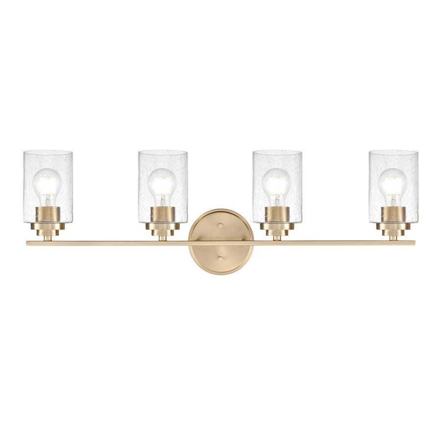 - Brighten up your bathroom or kitchen with our sophisticated Moven 4-light vanity.