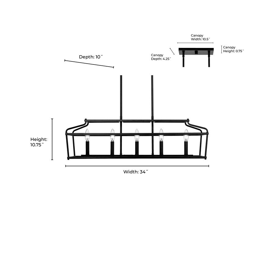 - This gorgeous 34-inch-wide island light features a steel frame.