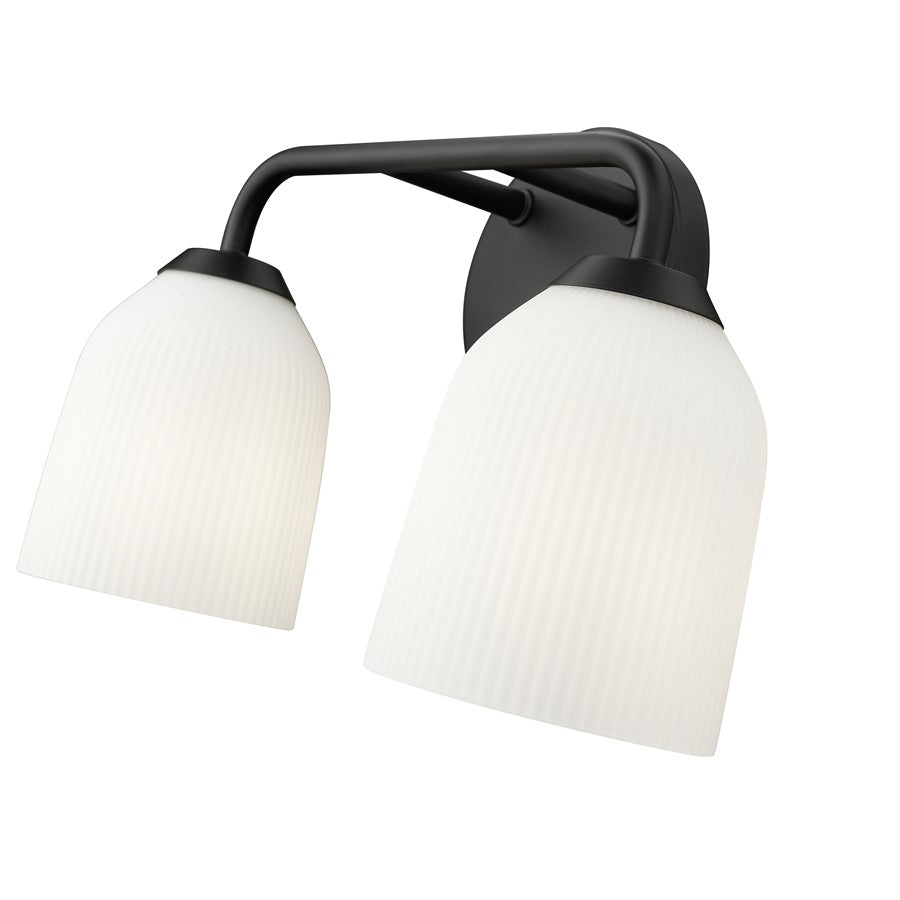 Inspired by the functionality and simplicity of the Craftsman design movement, the Norah Family of vanity lighting creates a radiant addition to any bath while eliminating shadows. ?These 2-, 3-, and 4-light fixtures comprise bell-shaped, ribbed, opal glass globes perfectly balanced with understated and gently curved lines. The collection is finished in either matte black, brushed nickel, or vintage brass.