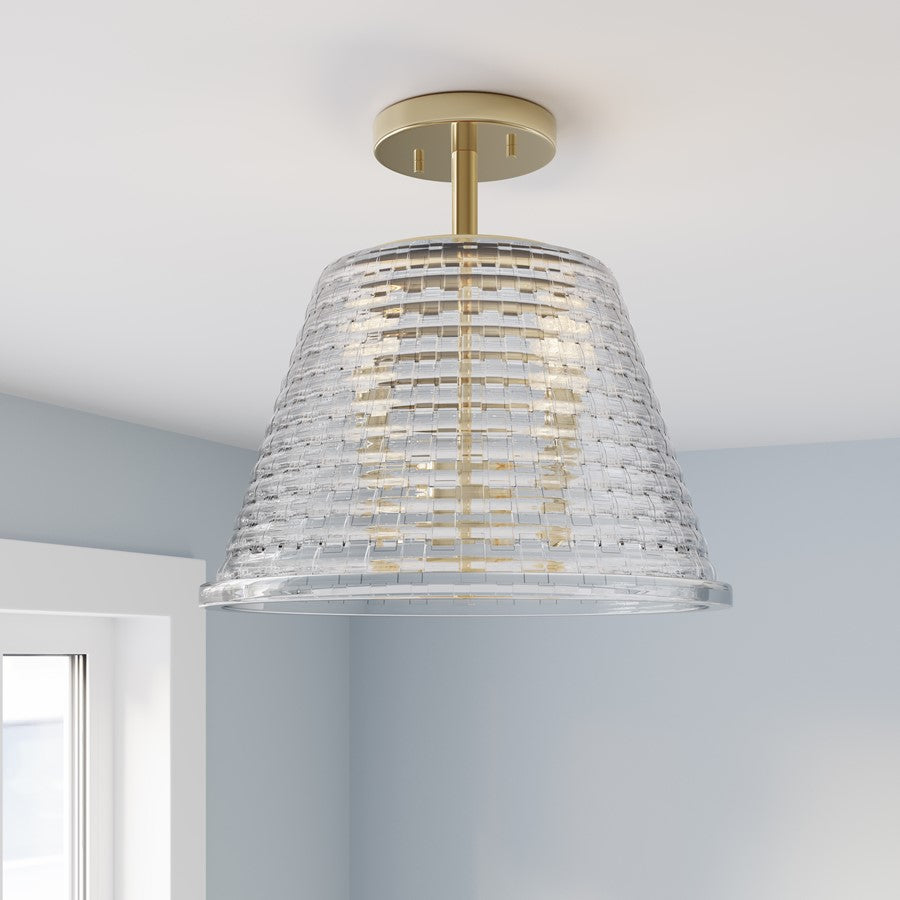 The Saben Family of lighting is pure glamour, and an excellent choice for any interior scheme from transitional to Art Deco. Options include pendant, vanity, sconce, and semi-flush mount fixtures. The basketweave textured, clear glass shades create a crystal-like effect against the sleek designs available in matte black, modern gold, polished nickel, brushed nickel, or vintage brass.