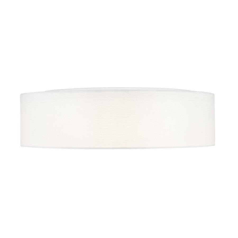 - These flush mounted ceiling lights are crafted from steel and include a white with burnished gold interior fabric decorative shade.