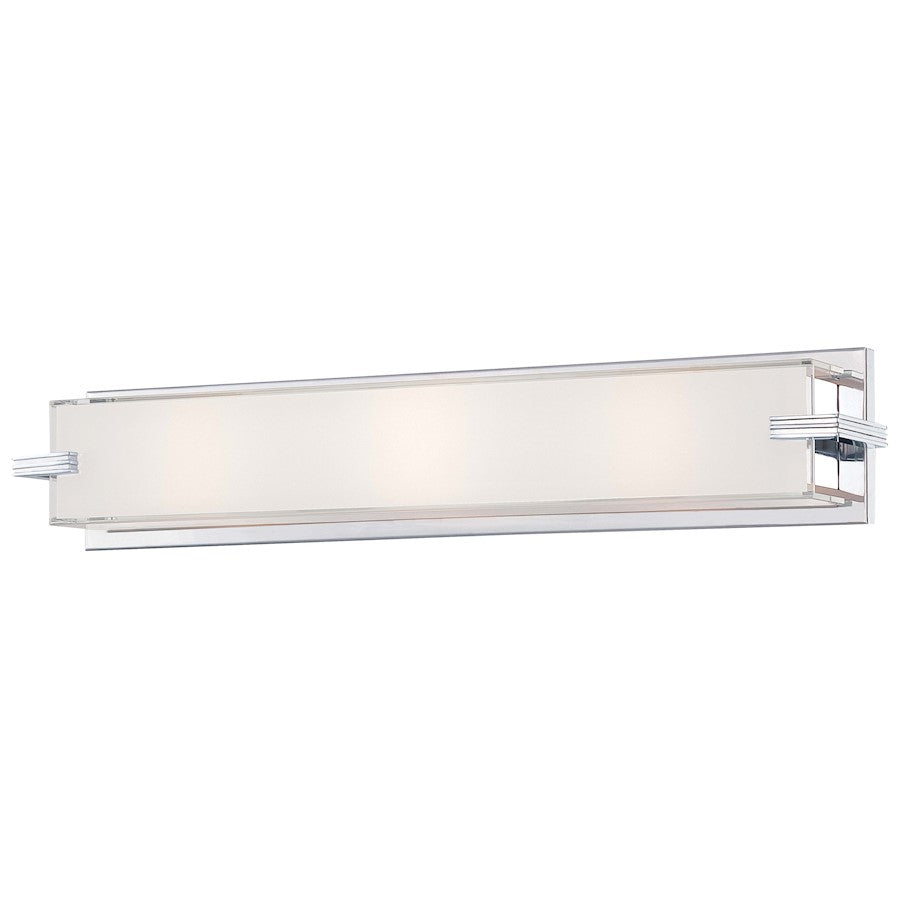 George Kovacs Cubism 3-Light Bath with Chrome finish features clean, crisp angles and geometric lines. Rich mitered glass conrners provide a visually elegant detail to the flattering light emitted from this contemporary collection.