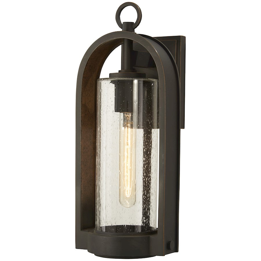 Inspired by modernism, the Kamstra Outdoor Collection by The Great Outdoors features a U-frame surrounding a Clear Seeded glass. The glass and bulb combined gives a sense of depth and complexity to this simple piece. Powered with T10 medium base bulbs, this wall sconce will create a welcoming atmosphere outside your home for years to come.