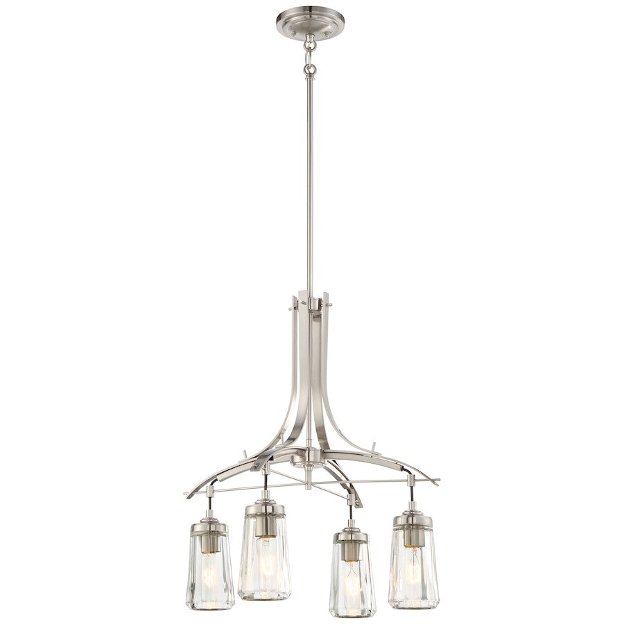Minka-Lavery Poleis 4 or 5-Light Chandelier with Brushed Nickel finish has clean lines that accentuate a new angle-faceted glass, creating an amazing Industrial look for your home.