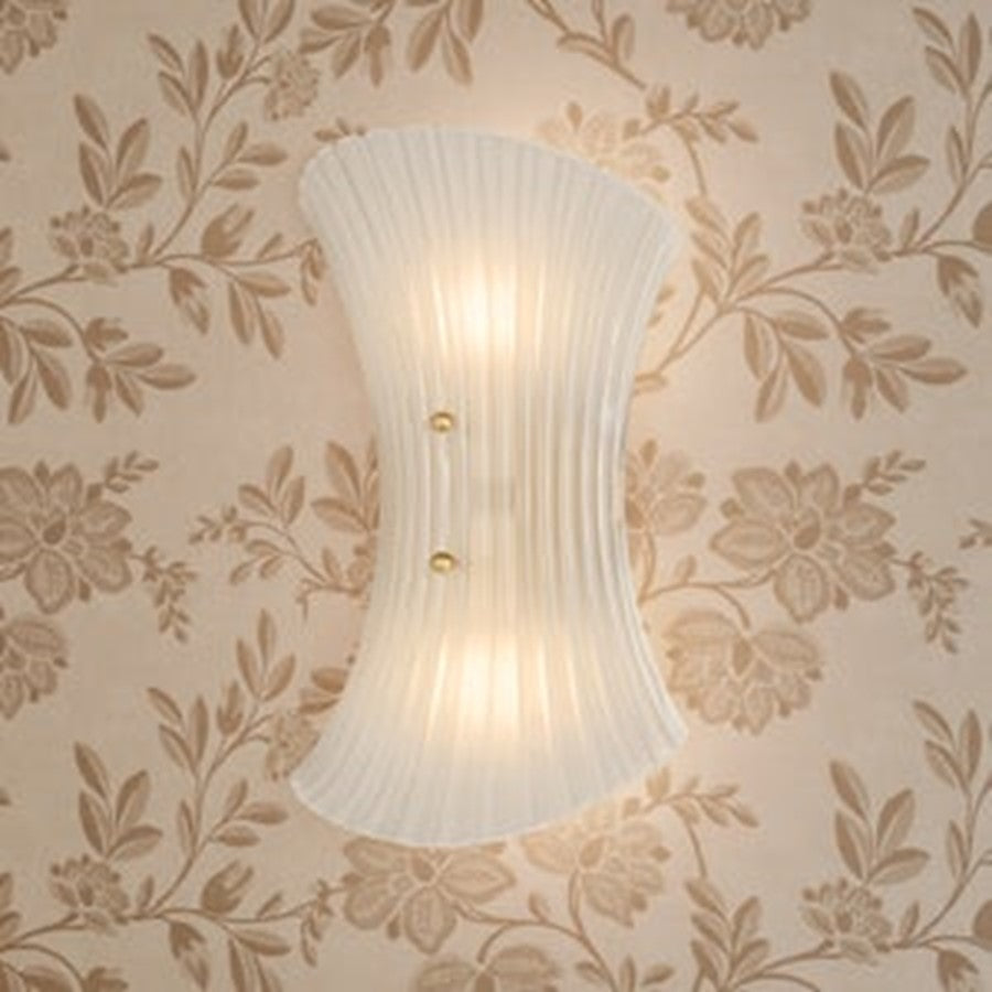 In the vein of mid-century Murano sconces, Esmae’s shell-shaped silhouette is a thing of beauty. The etched clear glass shade features fine-resolution ribbing that runs parallel to the form, curving inwards at the center. Two small spherical thumbscrews provide a glimpse of the Aged Brass hardware while keeping the focus on the translucent glass.