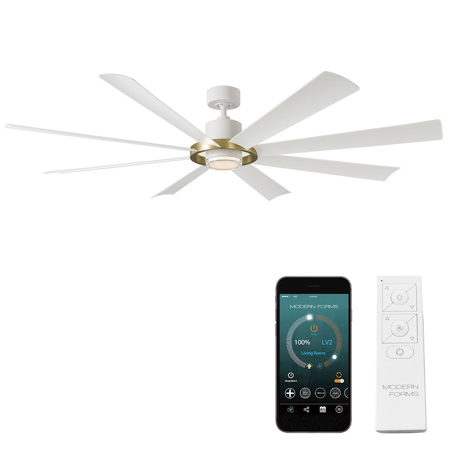 The sublime Aura Smart Ceiling Fan by Modern Forms defines the look and performance you desire in your bedroom, dining, or living area. A 72-inch sweep and a broad array of eight blades transport a swiftly moving surge of air across your room from an overhead silhouette with a cool cutting edge. Each blade is expertly engineered with a subtle curve to push a relaxed, comfortable breeze down over the room. Your remote control will commission one of its six speeds and drive the engine of comfort into your home.