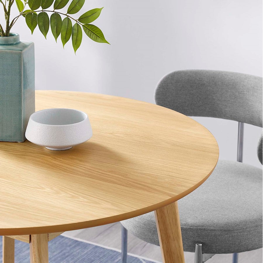 - Round Modern TableMid-Century Modern Style Wood Grain Veneer and MDFTapered Wood Legs Seats Up to 4Assembled Required