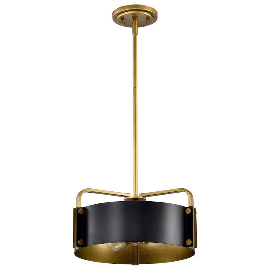 The Altos pendant adds a touch of drama and intrigue to any space. The gray or natural brass accents provide a coolness to the industrial-inspired construction, which is finished in a velvety, matte black. The meticulous attention to detail in the laser-cut shade and matching rivets provide Altos with its signature style and refined design. Effortlessly blending traditional with modern aesthetics, elevate your surroundings with a functional flush mount or stunning pendant.