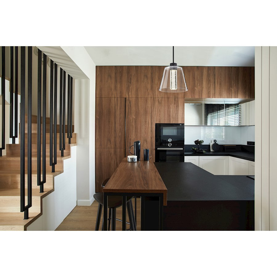 A fusion of contemporary style and classic allure, the exquisite Aura 62-2172 LED medium pendant is elegantly crafted for today's style. A dance of light awaits with integrated LED shining through a K9 bubble crystal column, inviting you to enjoy its warmth and glow through the clear glass shade. Featuring the latest in LED technology, the fixture comes in 3000K soft white light. The sleek matte black finish effortlessly compliments the clear glass shade, and is versatile, working well with existing finishes, and decor. Picture your space transformed with beautiful simplicity, the latest technology, and design that is a celebration of here and now with Aura.
