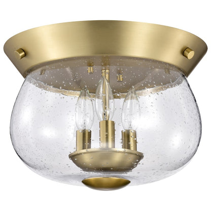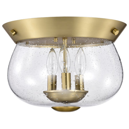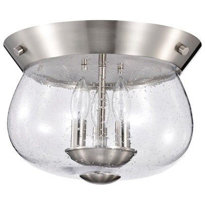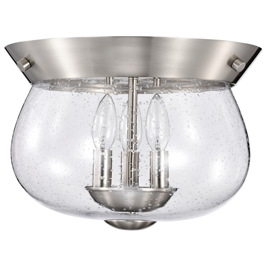 Step into a world of sophistication with the Boliver small flush mount, the perfect touch of classic elegance. Expertly crafted in a stunning brushed nickel or matte black or vintage brass finish on the fixture body and canopy, this pendant is a tribute to traditional, universal design. The clear seeded glass adds a touch of texture and sparkle to each fixture, creating a warm and inviting ambiance. Let Boliver greet you with its charming and graceful beauty.