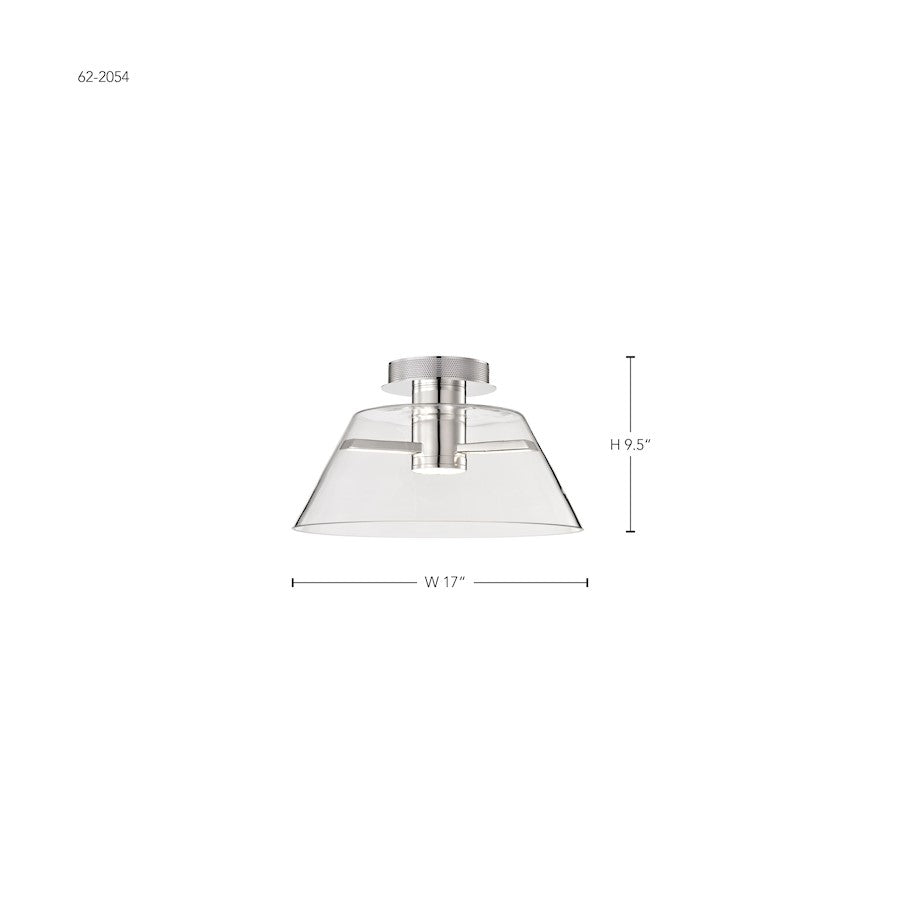 The Edmond 62-2054 LED medium semi-flush mount seamlessly combines form and function, providing a balance of design and sustainability. Available in a timeless, elegant, polished nickel, transforming any space into a beacon of transitional style. The clear glass shade allows the brilliance of the energy-saving LED technology to shine through a harmonious blend of sophistication and modern design. Illuminate your surroundings with Edmond, offering a contemporary twist to your home or office.