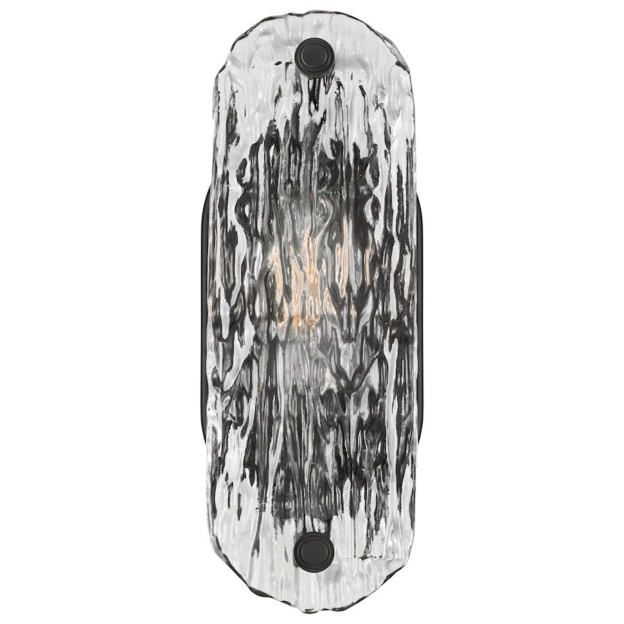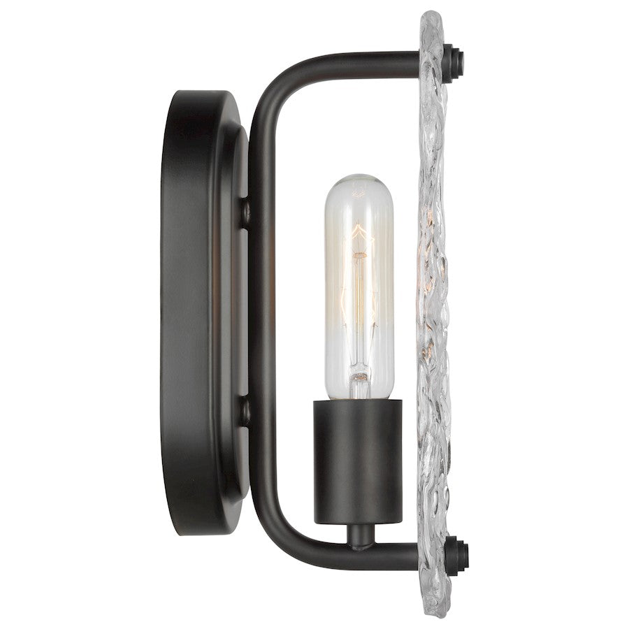 The Glacier 60-7811 one light vanity is styled with contemporary elements and rich finishes. A deep black adorns the fixture body and socket cover. An arresting ice glass completes the sleek silhouette. Pairing this wonderful fixture with a vintage bulb takes the style factor even further. Bring panache to your powder room with a pair of sconces flanking a vanity or spruce up that entry way; superb style for your home's illumination.