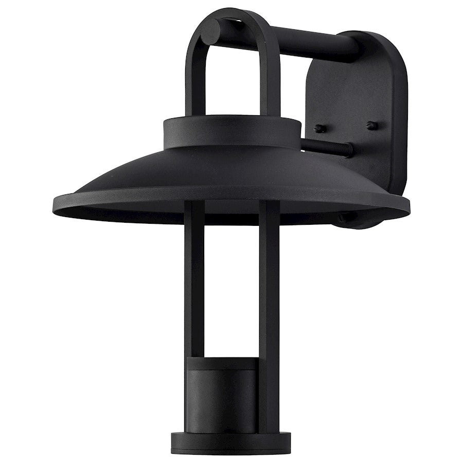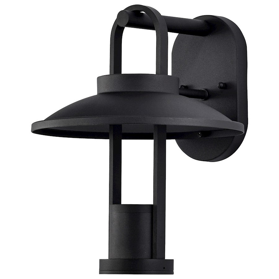 The Harriman 62-1605 medium or 62-1606 large outdoor wall lantern blends an integrated LED module with an open, airy style. The design is perfect for a deck, patio, or accenting your home's exterior. The simple hood shade and elongated frame resemble a wishing well and are finished in matte black to complement your existing home design.