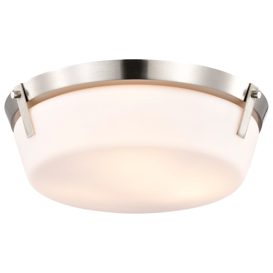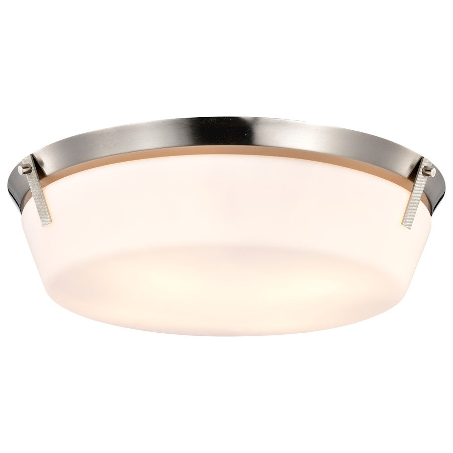 The Rowen flush mount is a versatile lighting fixture that exudes elegance and sophistication. The brushed nickel or natural brass finish gives the fixture a chic and inviting look, while the etched white glass diffuses the light to create a soft and ambient glow. Providing ample illumination makes the Rowen flush mount perfect for larger spaces or areas that require bright lighting.