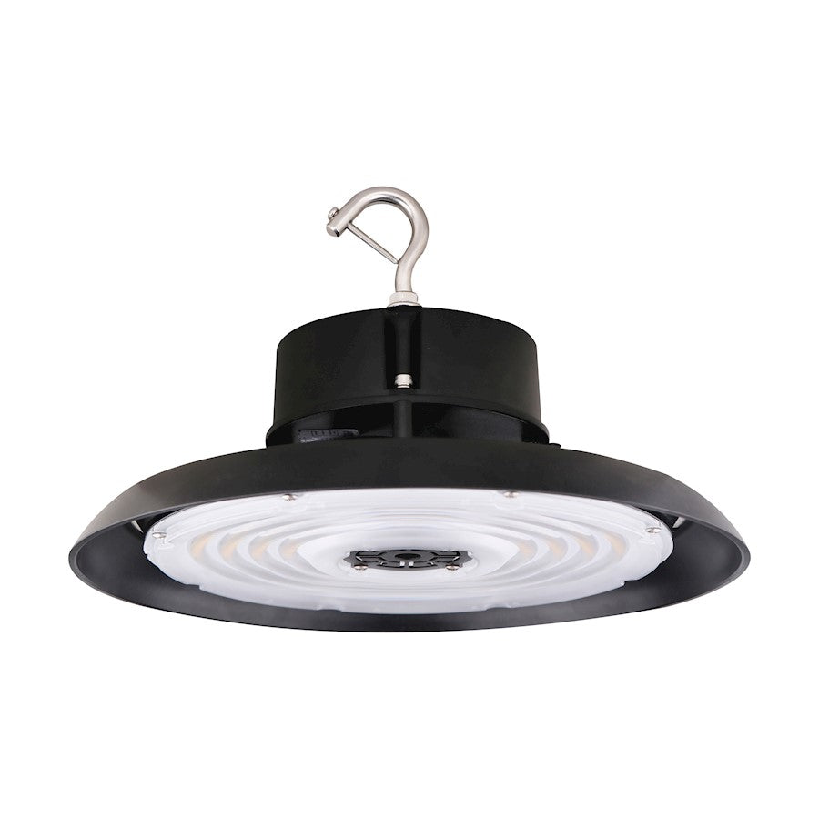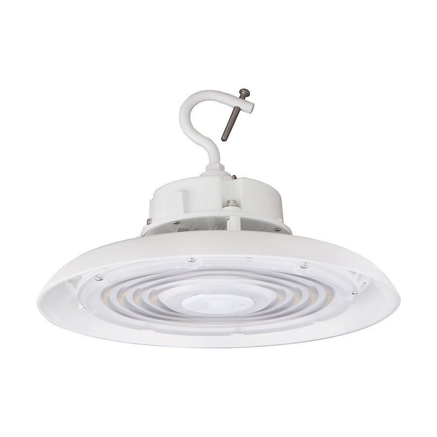 Introducing, Satco's 150-watt or 200-watt, 4000K, black or white UFO LED High Bay. The superior value offered in our new commercial LED High Bay UFO's meets the needs of numerous applications. A few add-ons that are available for purchase for this item include a pendant adapter, emergency battery back-up, protective wire guard and a microwave sensor. This product also features dimming capabilities, is wet location rated and is also DLC Premium 5.1 listed.