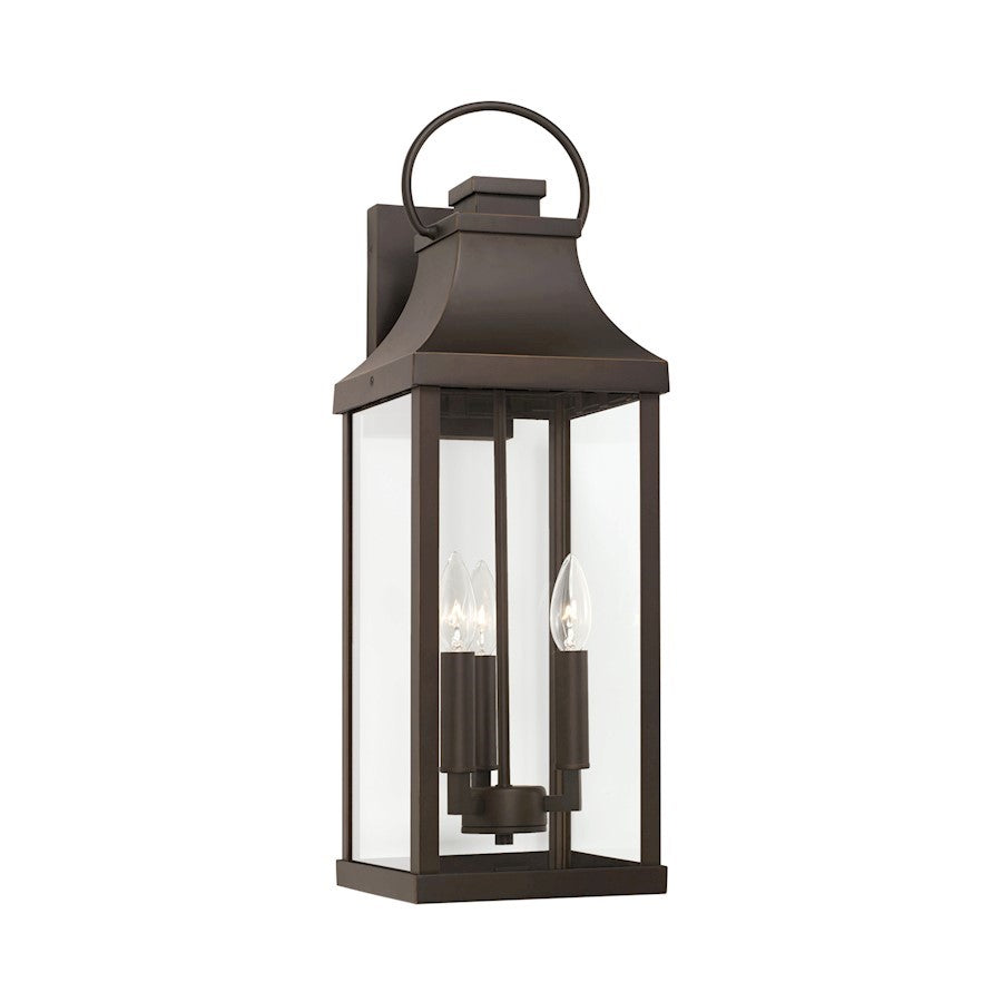 This item is an open box item that are like new at extremely discounted prices. Each item has been carefully inspected and repackaged. These units have not been previously used or installed. Transitional meets modern with the Bradford Large Wall Lantern. The bold lines and an oversized ring in a Oiled Bronze finish adds classic curb appeal to your home. Part of our Rain or Shine Collection and backed by our five-year warranty.