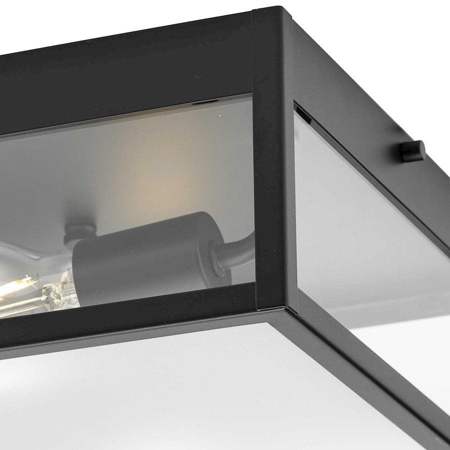The Parrish Flush Mount Light combines classic style with minimalist geometry to impart a modern appeal to outdoor patios and porches and indoor rooms where a distinctive ceiling light is desired; Arts and Crafts style brings a unique look to modern craftsman and transitional homes; The bold lines of its rectangular frame are coated in a crisp matte black finish; Softened illumination is cast through clear and etched Glass panes; Constructed from steel to ensure a long product lifespan; Uses (2) 60-Watt maximum, medium base bulb or LED equivalent, that is sold separately, and dimmable when used in conjunction with a dimmable bulb; Measures 11 in. square by 4.62-in. height; Warranty: Our 1-Year Limited Warranty guarantees your complete satisfaction with your purchase and includes professional after-sales customer service support; Includes installation instructions and mounting hardware for a quick, easy installation; Progress Lighting products are designed for exceptional quality, reliability, and functionality