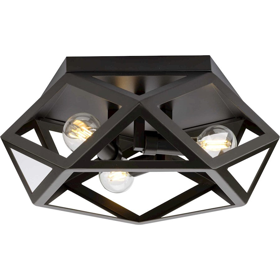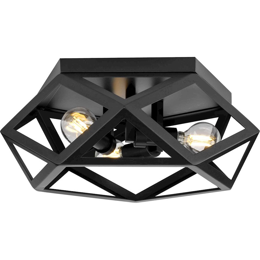 The Saucedo Collection flush mount offers an intricate and contemporary appeal to bedrooms, halls and foyers; The fixture's artful geometrical arrangement creates a unique and bold statement in contemporary and modern settings; The flush mount blending together in an esoteric conjunction, creating a prominent geometrical surround; A round mounting plate holds the geometrical steel arrangement, allowing the fixture to shine brightly from above; Ambient light is softly diffused through its artful frame; Uses (3) 60-Watt maximum, candelabra base bulbs or LED equivalent, that is sold separately, and dimmable when used in conjunction with a dimmable bulb; Measures 14.62-in. diameter by 5.5-in. height; Certifications: CCSAus Damp Location listed, fixture can be used in rooms where moisture may be present; Warranty: Our 1-Year Limited Warranty guarantees your complete satisfaction with your purchase and includes professional after-sales customer service support; Includes installation instructions and mounting hardware for a quick, easy installation; Progress Lighting products are designed for exceptional quality, reliability, and functionality