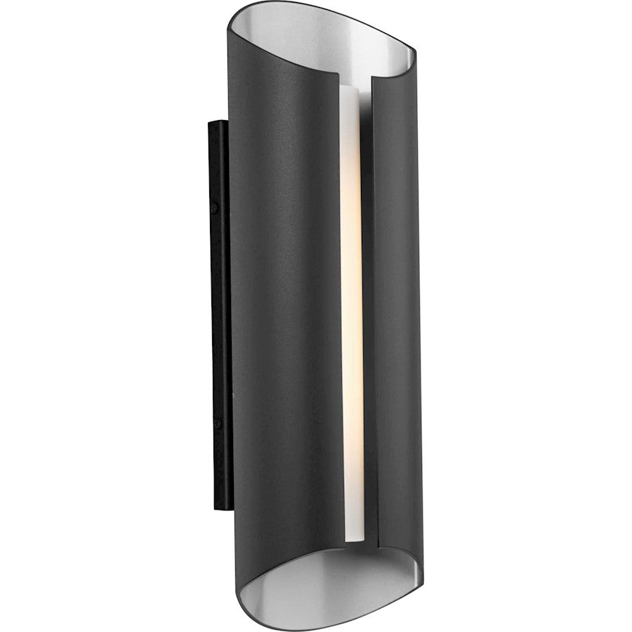 A crisp, vertical frame accents outdoor contemporary and modern settings; The fixture's lean, angular lines perfectly highlight outdoor patios and porches; The light's cylindrical frame is finished in classic black; A contemporary, cylindrical frame accents an etched glass shade for focused, diffused ambient light; A distinctive, sensible design perfectly complements modern outdoor settings; Measures 7-in. width by 18-in. height, extends from wall 3.69-in.; For ideal illumination, an integrated edge-lit LED is included for a total (11w), 3000K, 90CRI, 143 delivered lumens which is dimmable to 10% brightness.; ADA Compliant fixture is ideal for residential and commercial settings; Certifications: CETLus Wet location listed, fixture can be used in rooms where water may be present; Warranty: Our 5-Year Limited Warranty guarantees your complete satisfaction with your purchase and includes professional after-sales customer service support; Includes installation instructions and mounting hardware for a quick, easy installation