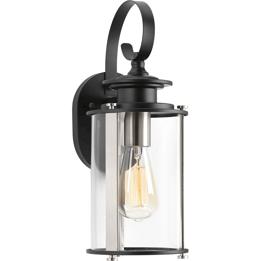 Squire lanterns feature a classic traditional profile with clean, modern metal fittings. Accented with contrasting metallic elements, the cylindrical frame is comprised of a clear glass diffuser.