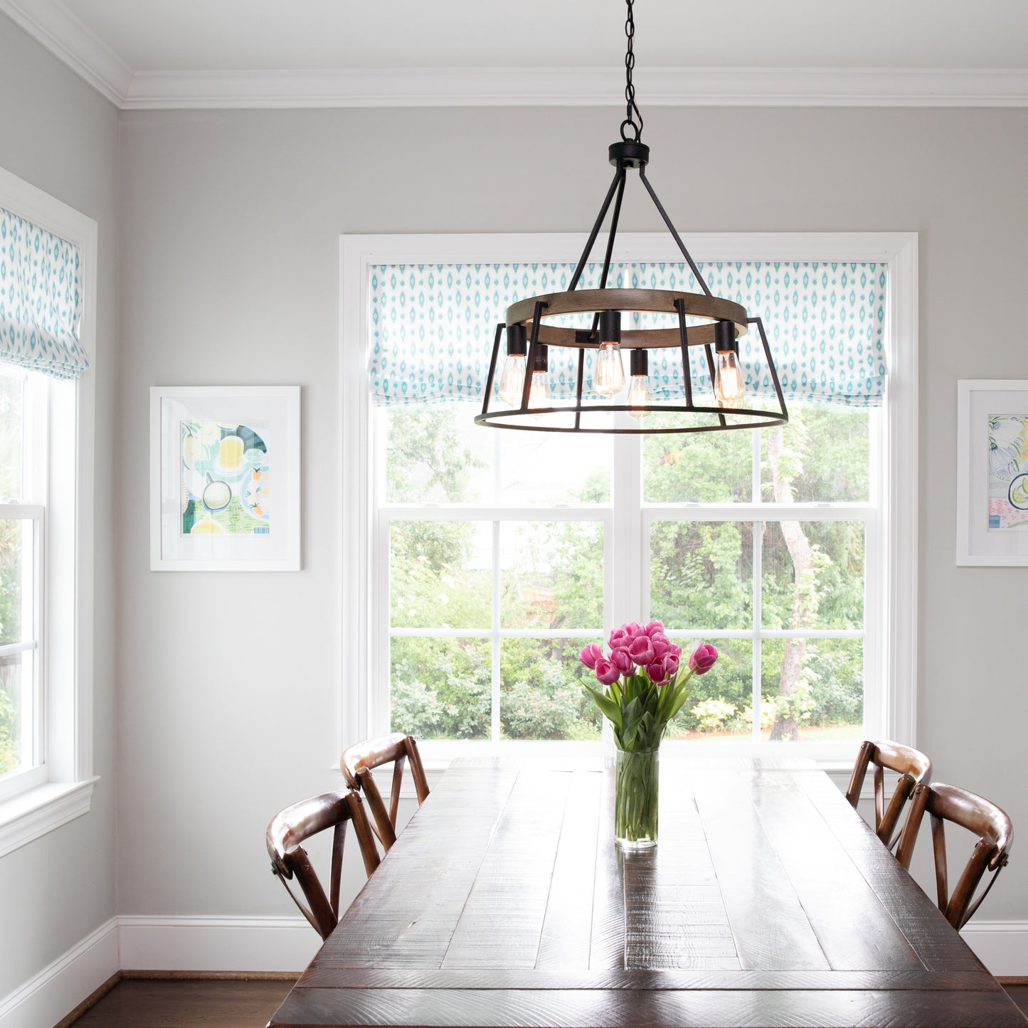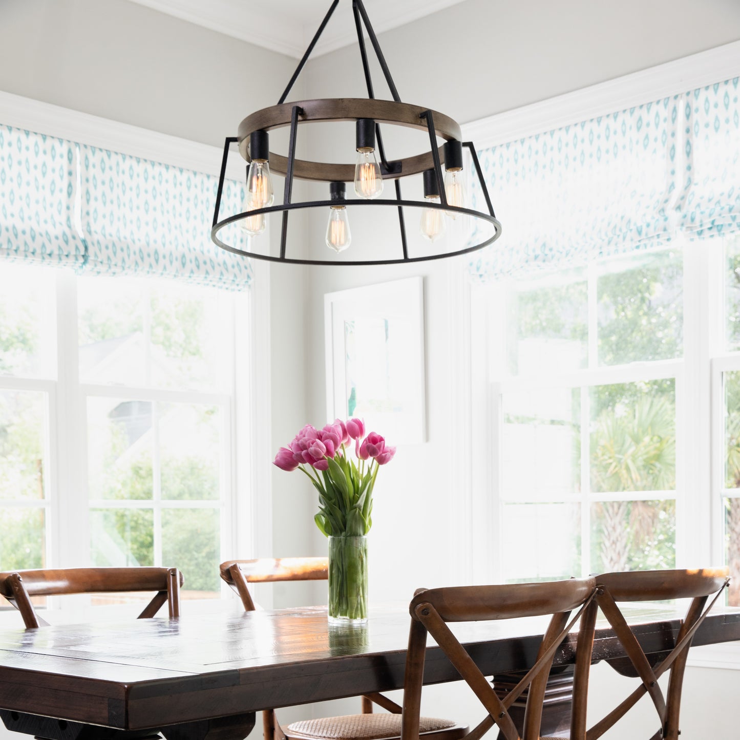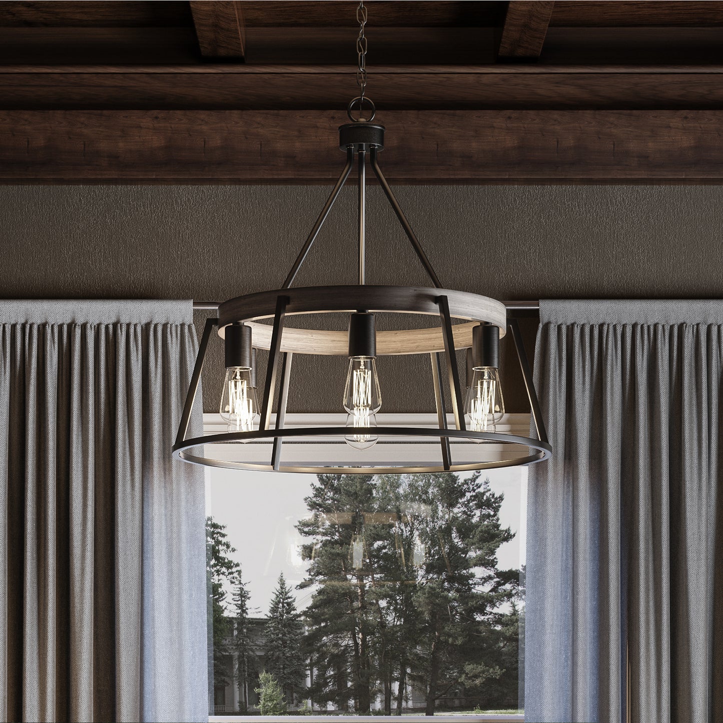 With open framework and weathered styling, the Brockton comes farmhouse-approved. The grey ash finish of the thin metal body pairs perfectly with the whitewash finish of the faux wood accents. Vintage filament bulbs provide soft, ambient light in this rustic charmer.