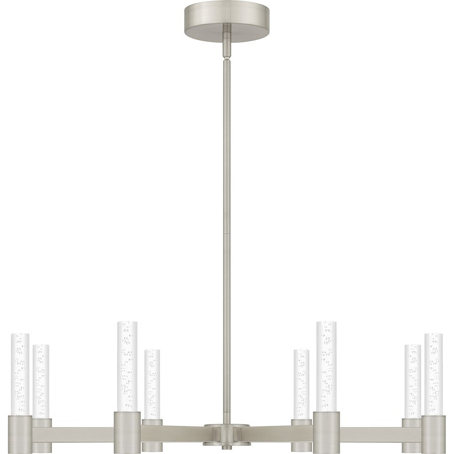 Create a sleek and contemporary look with Adler, part of the popular Platinum by Quoizel collection. Choose from a brushed nickel finish with clear bubble acrylic shades or matte black with clear acrylic shades and subtle marble detailing. Whichever you choose, the Adler chandelier embraces minimalist design with a hint of sparkle, and the integrated LED technology emits an ambient, energy-saving glow.
