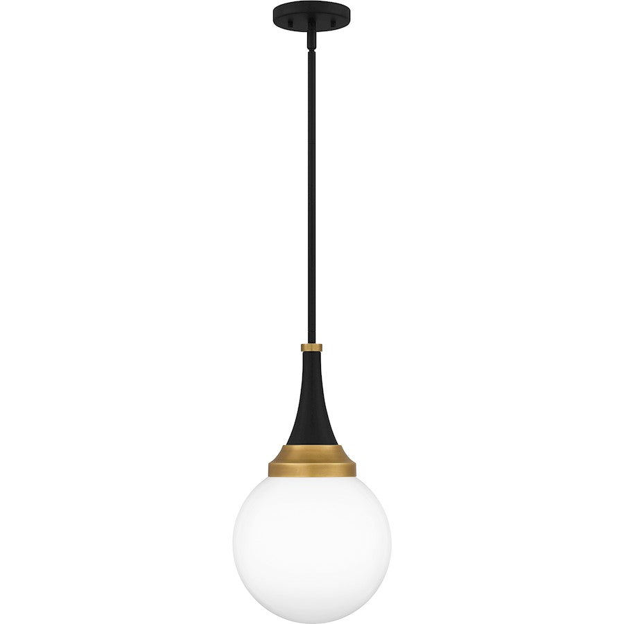Black and gold create a bold and modern pairing in the Arlo pendant light. The clear opal glass globe is accentuated by a matte black finish and lustrous brass accents at the top. Hang Arlo pendants alone or in a grouping over a kitchen island, bar area, or table for optimal lighting.