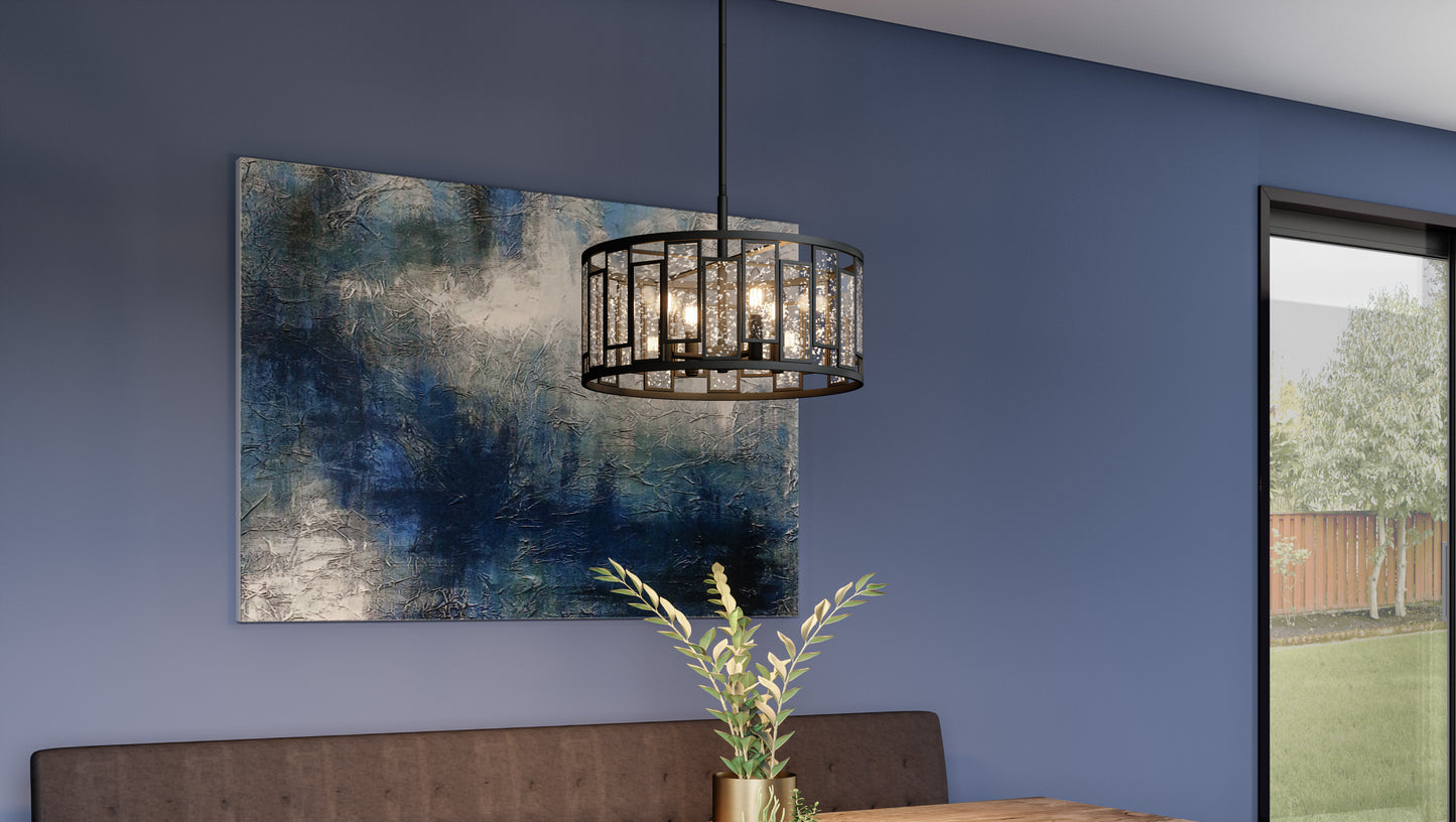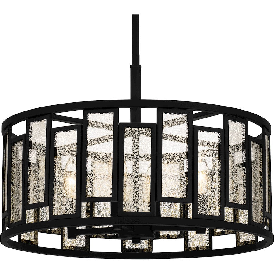 Staggered mercury glass panels give Bankston a character all its own. With a matte black finish, this design, available as a pendant or semi-flush mount, enhances contemporary spaces with sculptural panache. Mercury glass is an homage to antique fixtures, made modern in the hands of Quoizel artisans.