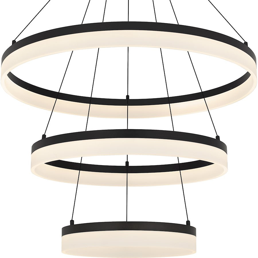 Sleek and striking, the minimalist Cohen series hypnotizes with a halo-like ring of glowing LED light. Choose from a variety of style options from flush mount to chandelier, all featuring a white acrylic shade and your choice of either brushed nickel or oil rubbed bronze finish. The chandelier style is suspended from steel cord, reinforcing a contemporary aesthetic.