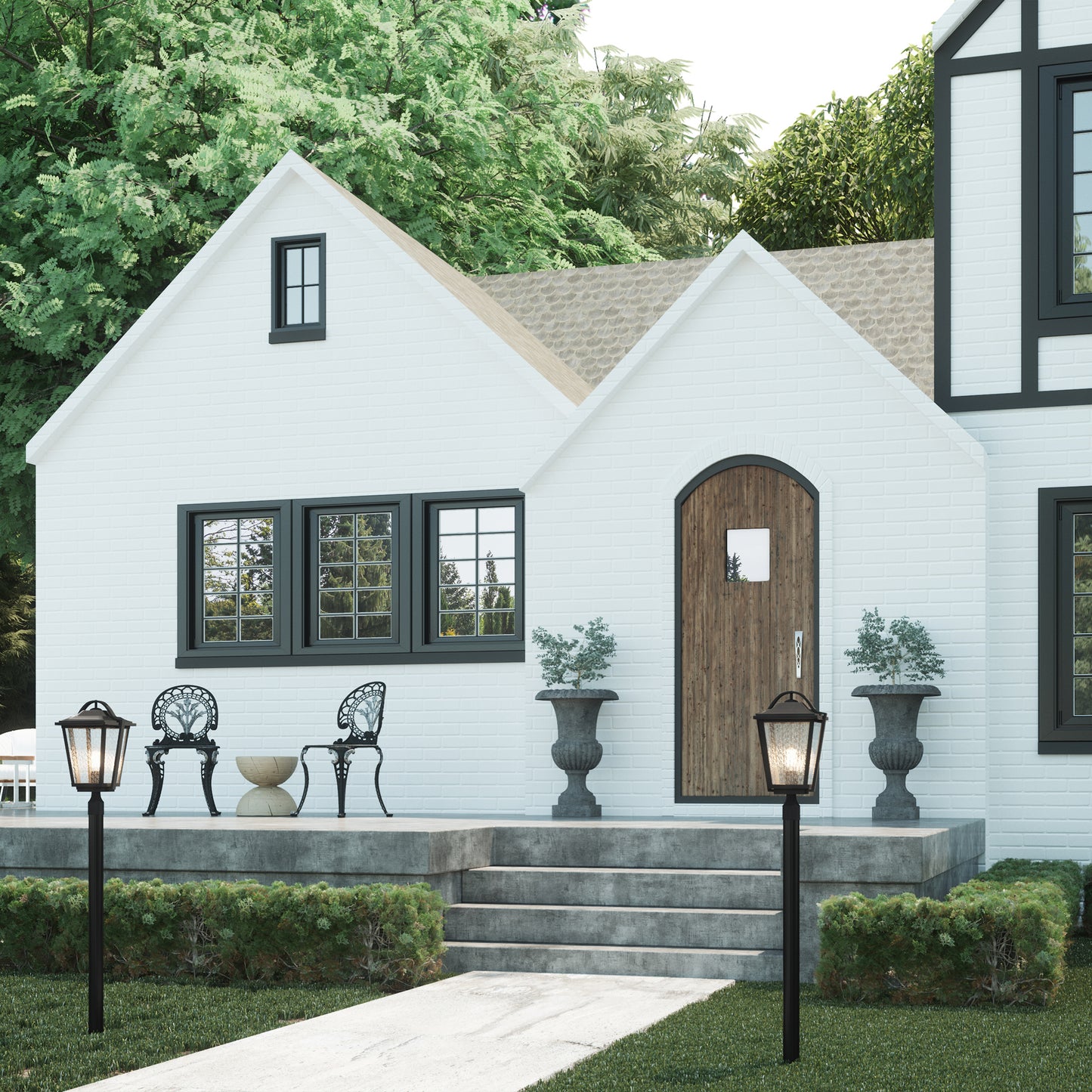 Let Darius light your way home. This collection of post and wall lanterns provides ample, failsafe lighting with the refinement and texture of clear seedy glass. Rendered in resin, Darius will never rust or corrode and is stain-resistant. The earth black finish grounds the look — simple, sophisticated, and designed with functionality first and foremost in mind.