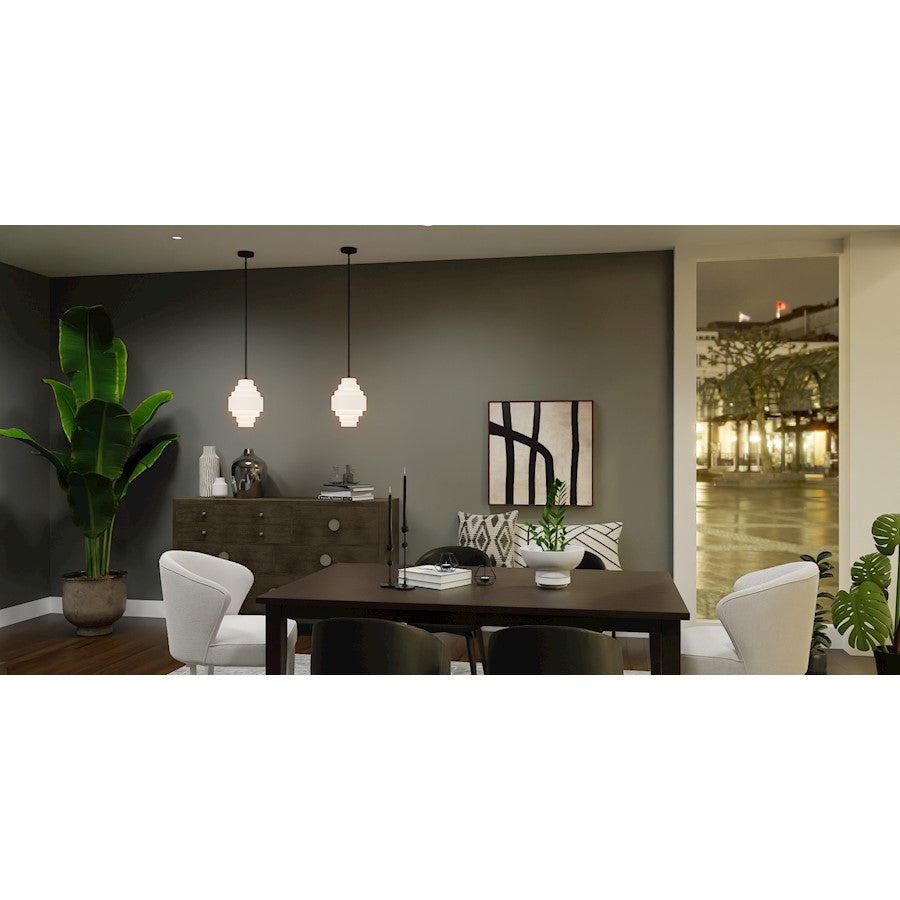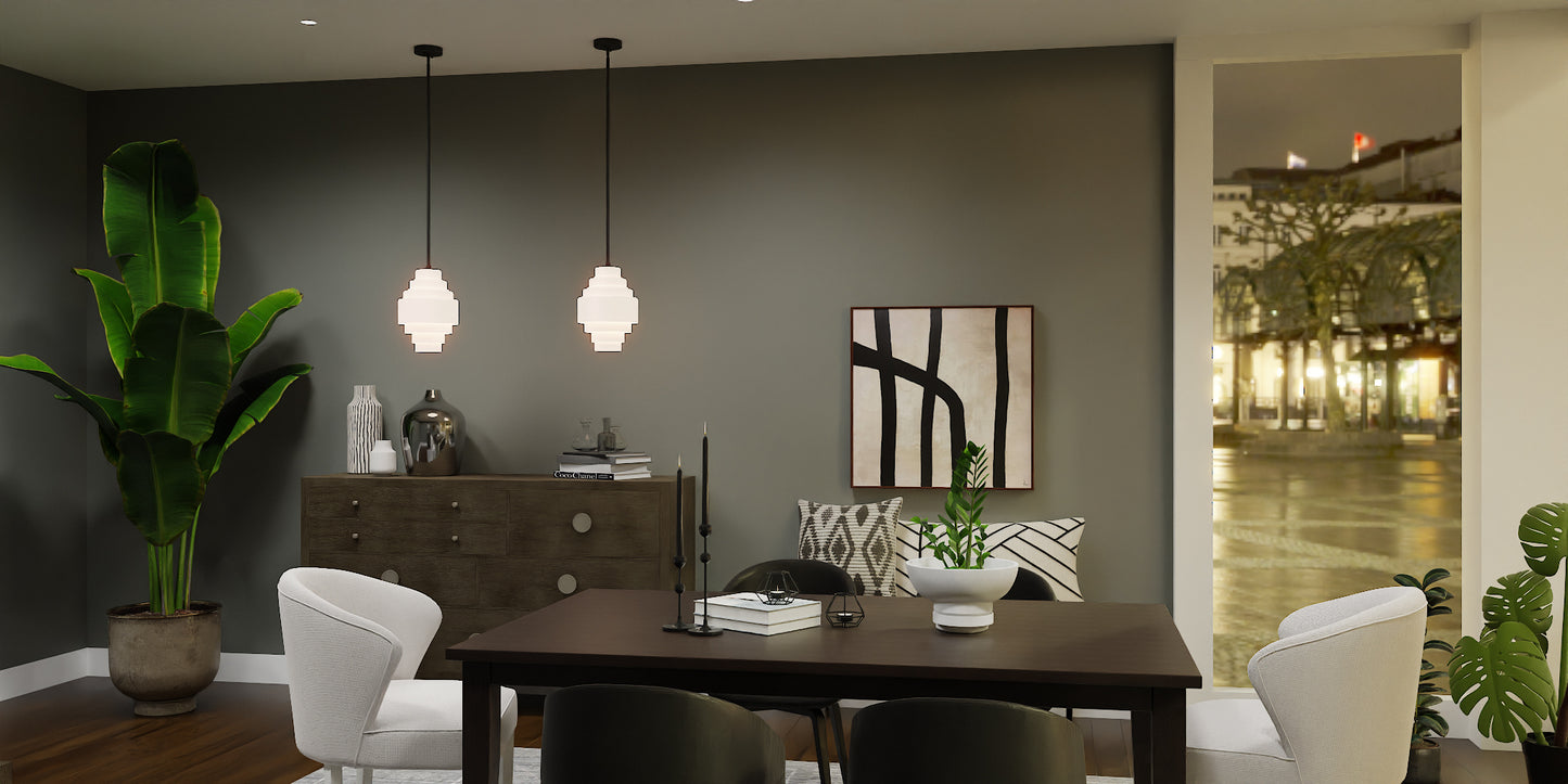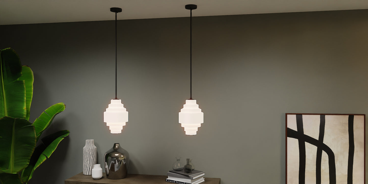 The Driscoll pendant offers eye-catching, modern styling for every room. Alternating sizes of cylindrical shades overlap for a cool, layering effect reminiscent of a waterfall. Choose from a classic polished chrome finish with clear glass shades or a bold matte black finish with clear etched glass.