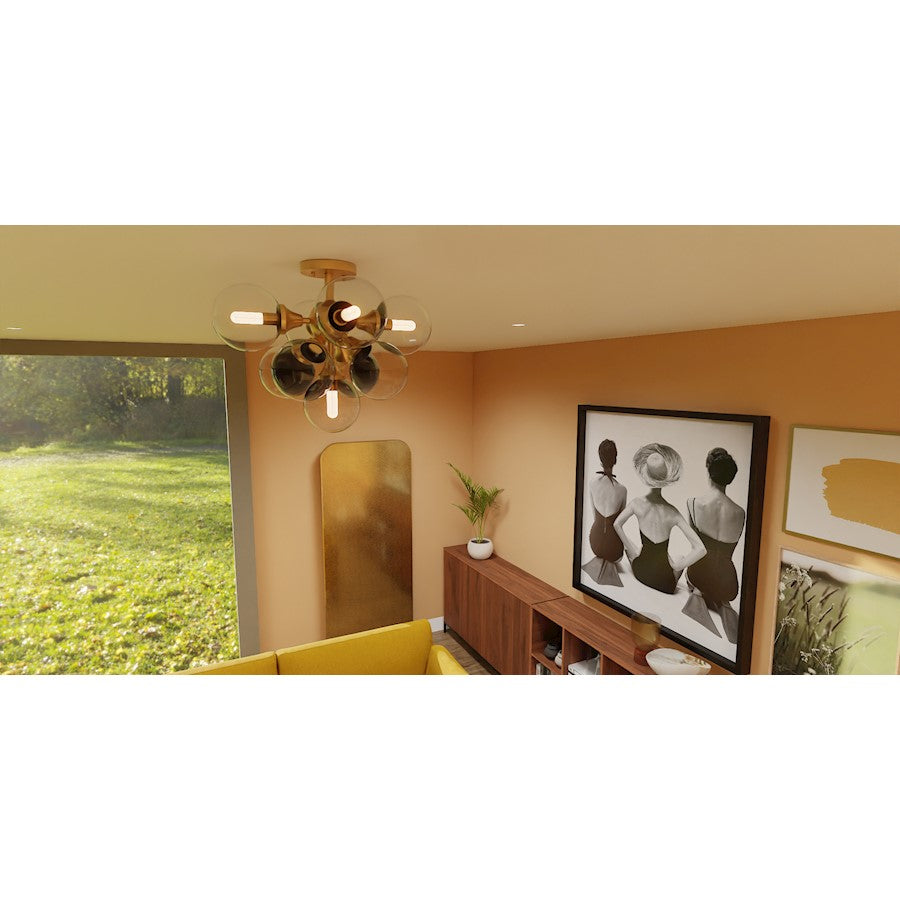 Glinda elevates modern design for a unique and artful effect. Available in either a semi-flush mount or pendant light, this glamorous piece features clear glass orbs and a brushed weathered brass finish. Hang Glinda in a variety of interior settings, and pair with vintage filament bulbs for maximum flair.
