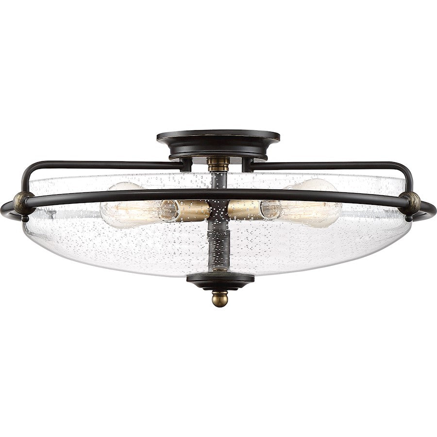 This understated style provides a stylish, soft modern look for most any room. The clear seedy glass illuminates your home with a soothing glow. It is held in place by softly curved arms and is finished in a rich palladian bronze.