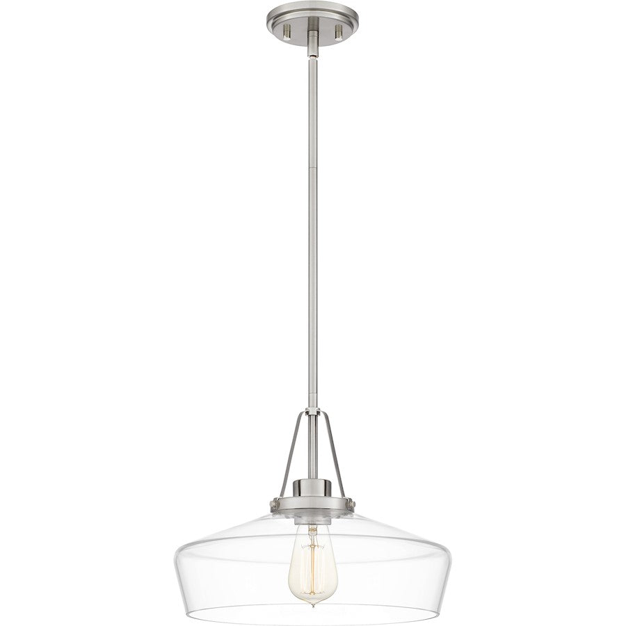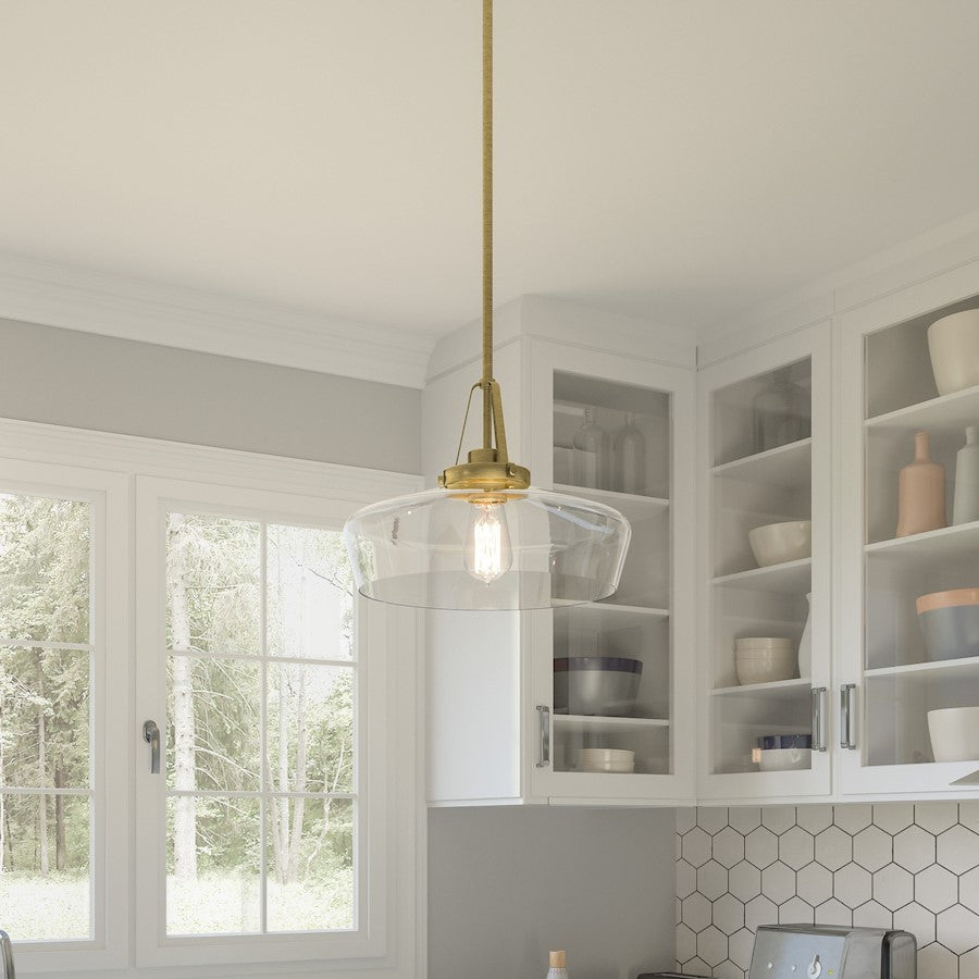 The Haven pendant illuminates timeless style with its clear glass shade and classic finishes. Choose from aged brass, brushed nickel, or matte black to best complement your unique interior design scheme. This multitalented light would work in bathrooms, kitchens, and home offices alike.
