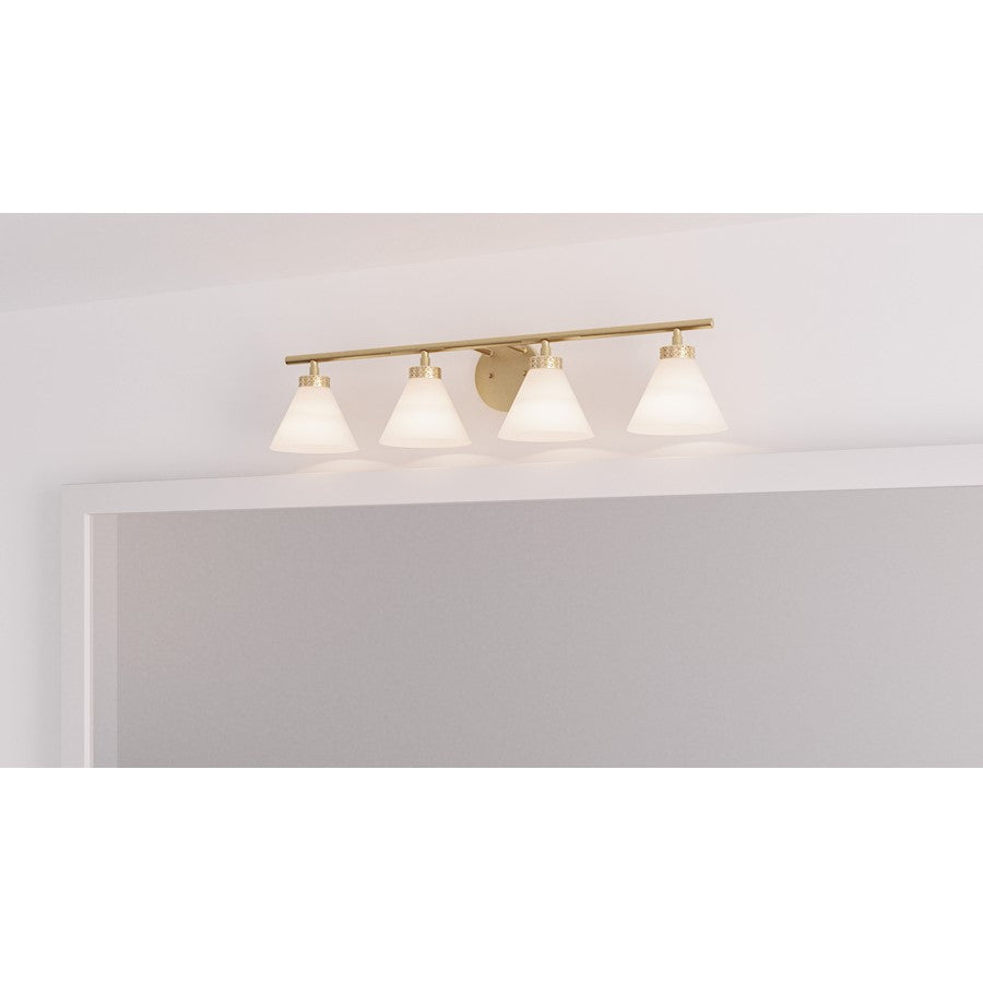 Upgrade any bathroom vanity with the Ira bath light. Opal glass shades cast a warm and ambient glow, setting the mood for an intimate home spa experience. This versatile and minimalist-inspired design is finished in weathered brass with hammered details on parts of the finish to add subtle texture. Configure Ira with shades facing up or down depending on your lighting needs.