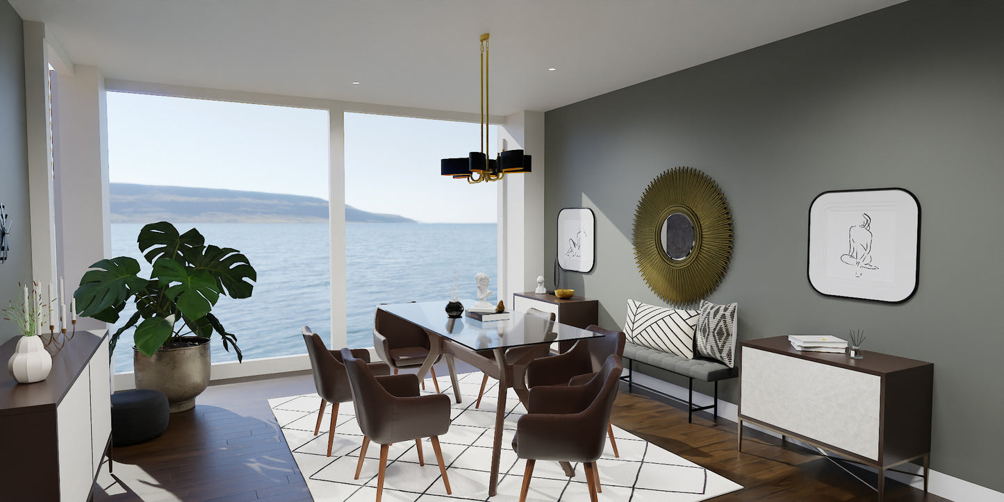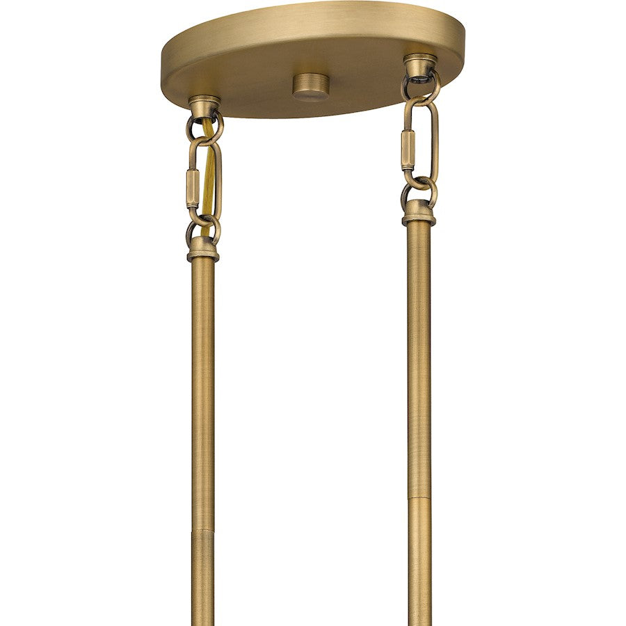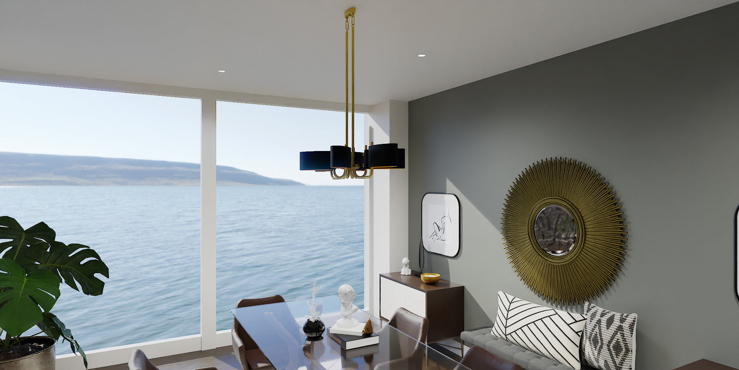 The Madden chandelier is as modern as it is sculptural. The elongated black metal shades are enhanced by gold interiors and matching accents, creating a sense of contrast and warmth. With its geometric shape and aged brass finish, Madden makes a bold choice over any kitchen island, bar area, or table.