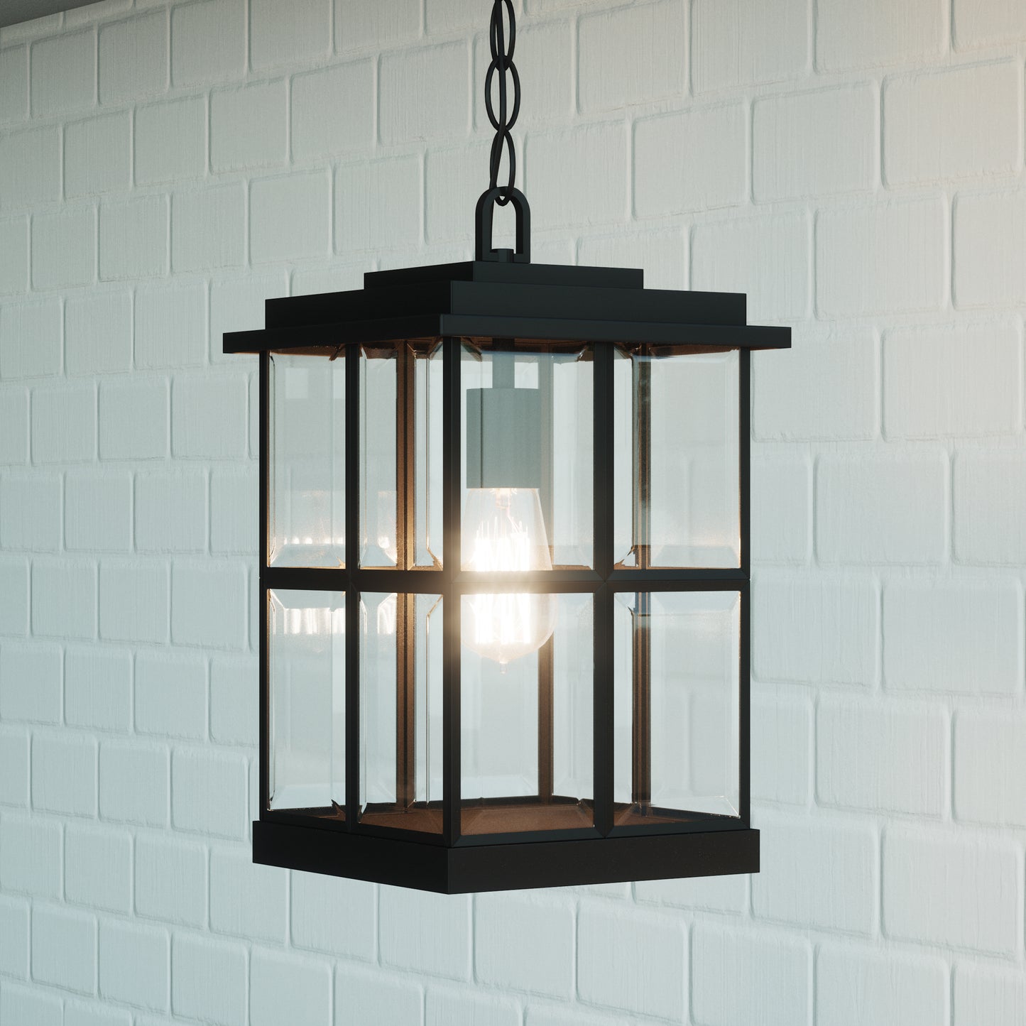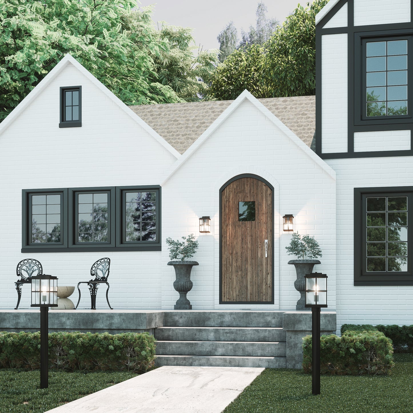 Add instant curb appeal to your home with the Mulligan outdoor collection. The rectangular frame and glass panels create a transitional feel that complements a modern farmhouse or craftsman style home. Finished in matte black with clear beveled glass, this collection is sure to make a great first impression.